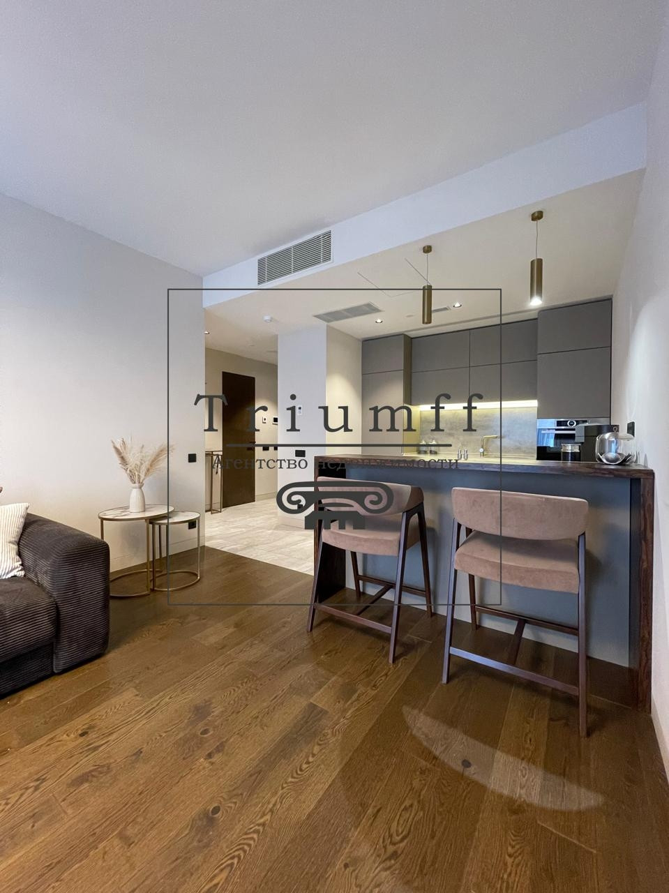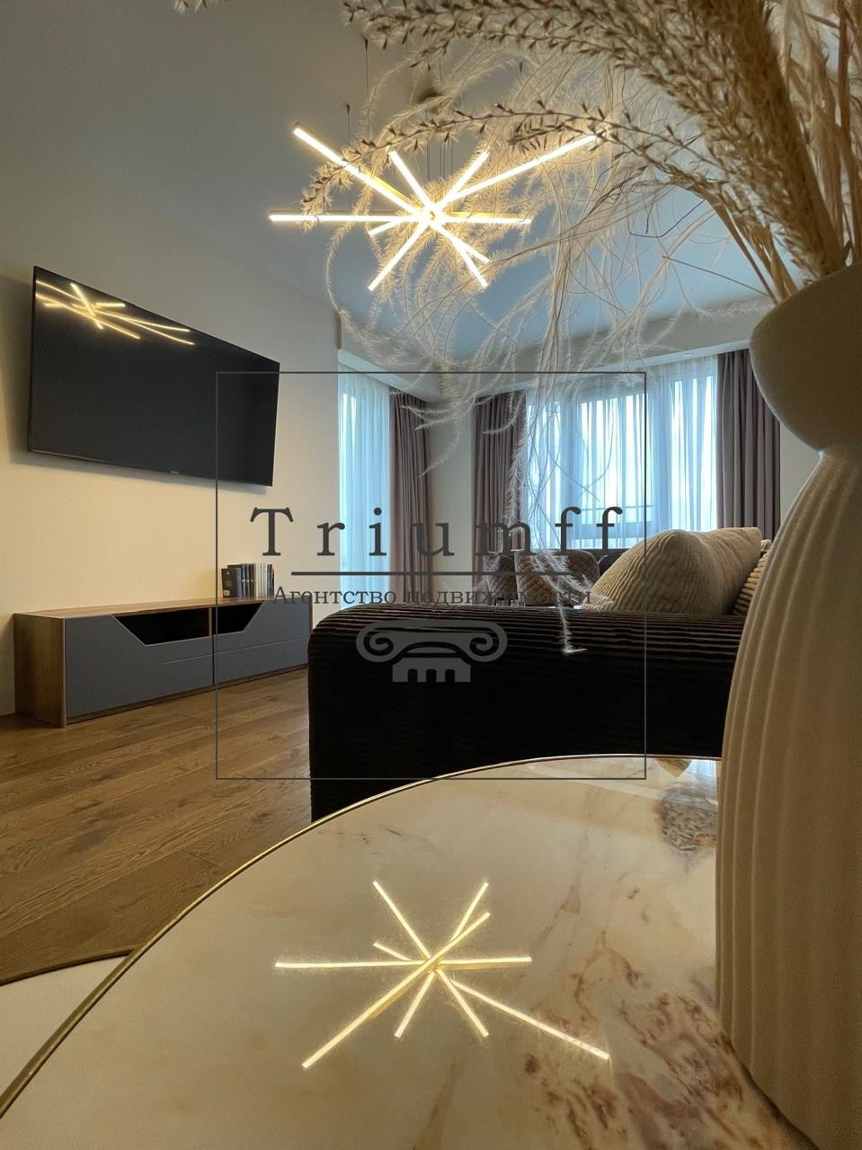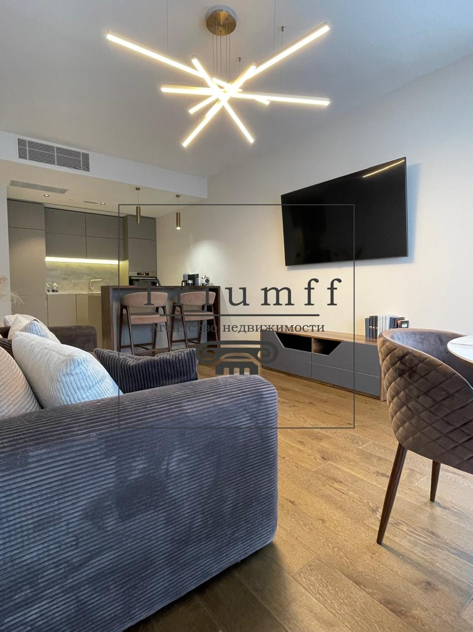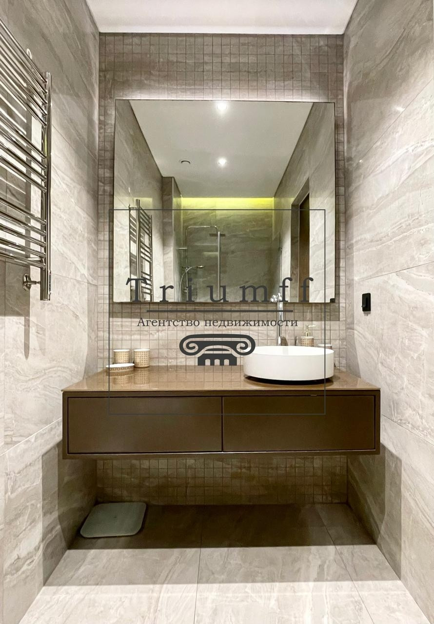 В отделке использовались высококачественные материалы от ведущих производителей. Апартамент оборудован встроенной мебелью и техникой Bosch. Система кондиционирования, система умный дом, панорамные окна, конвектора, подогрев пола, приточно-вытяжная вентиляция.