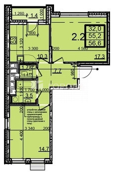 Общая площадь 57.1 м2