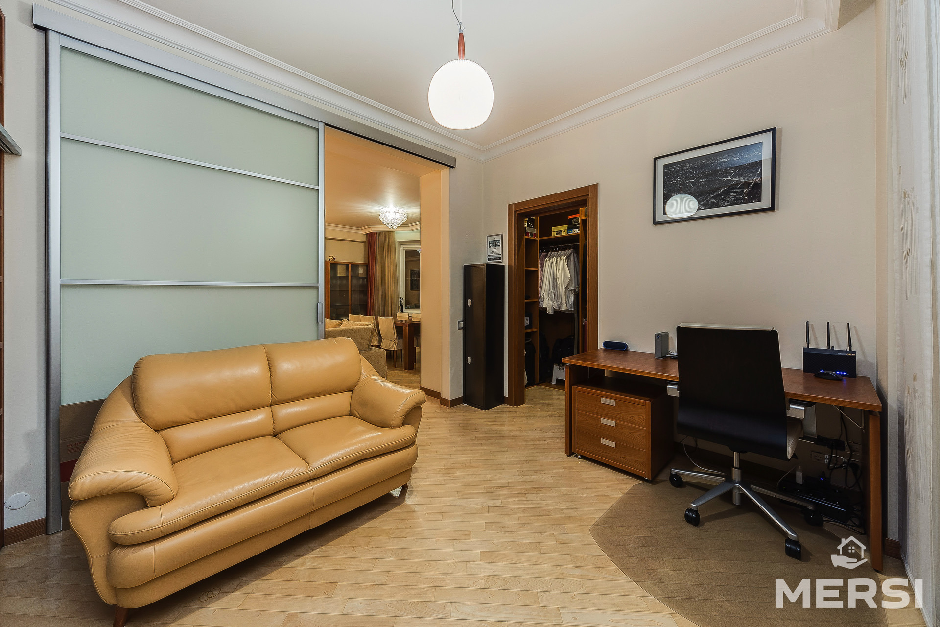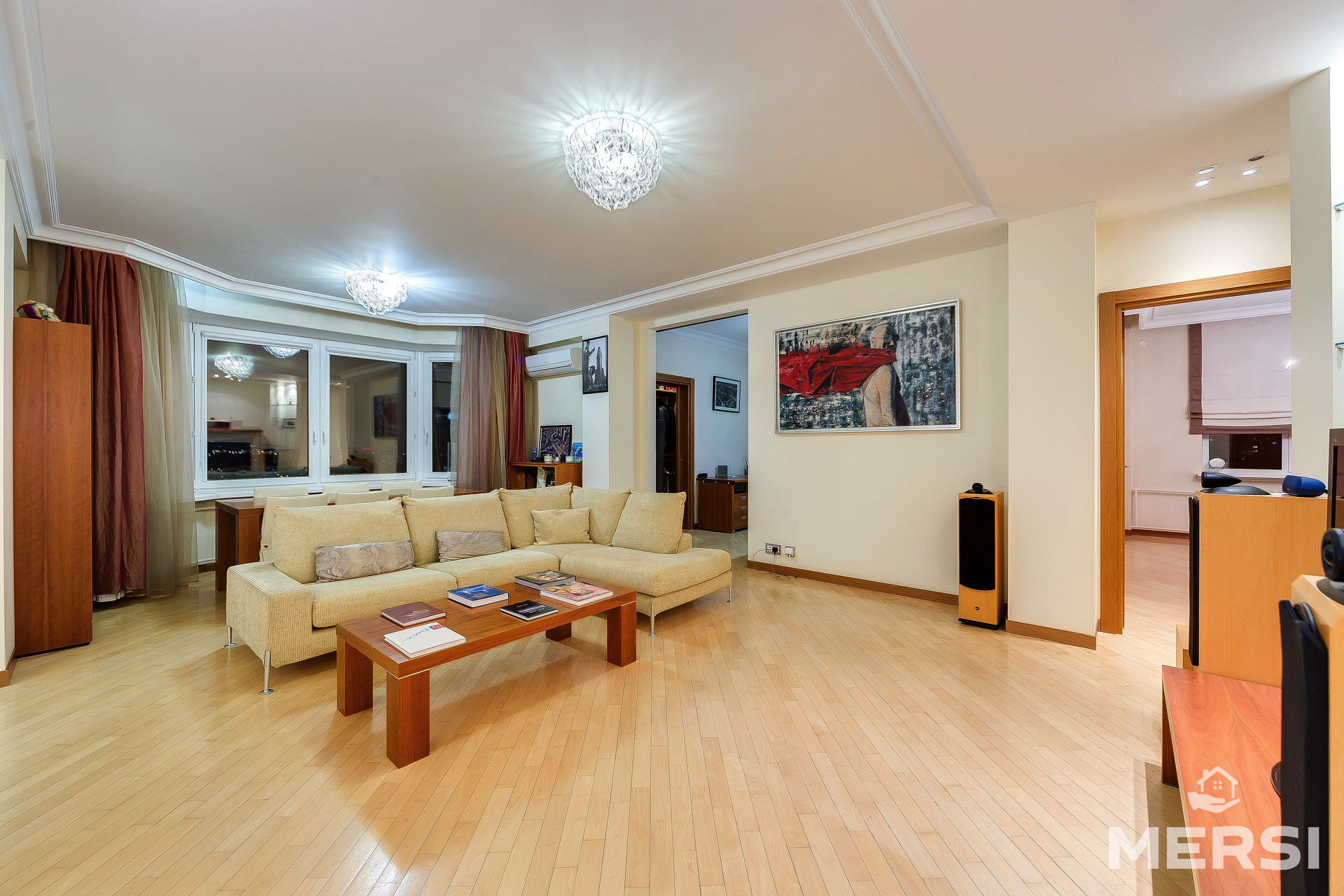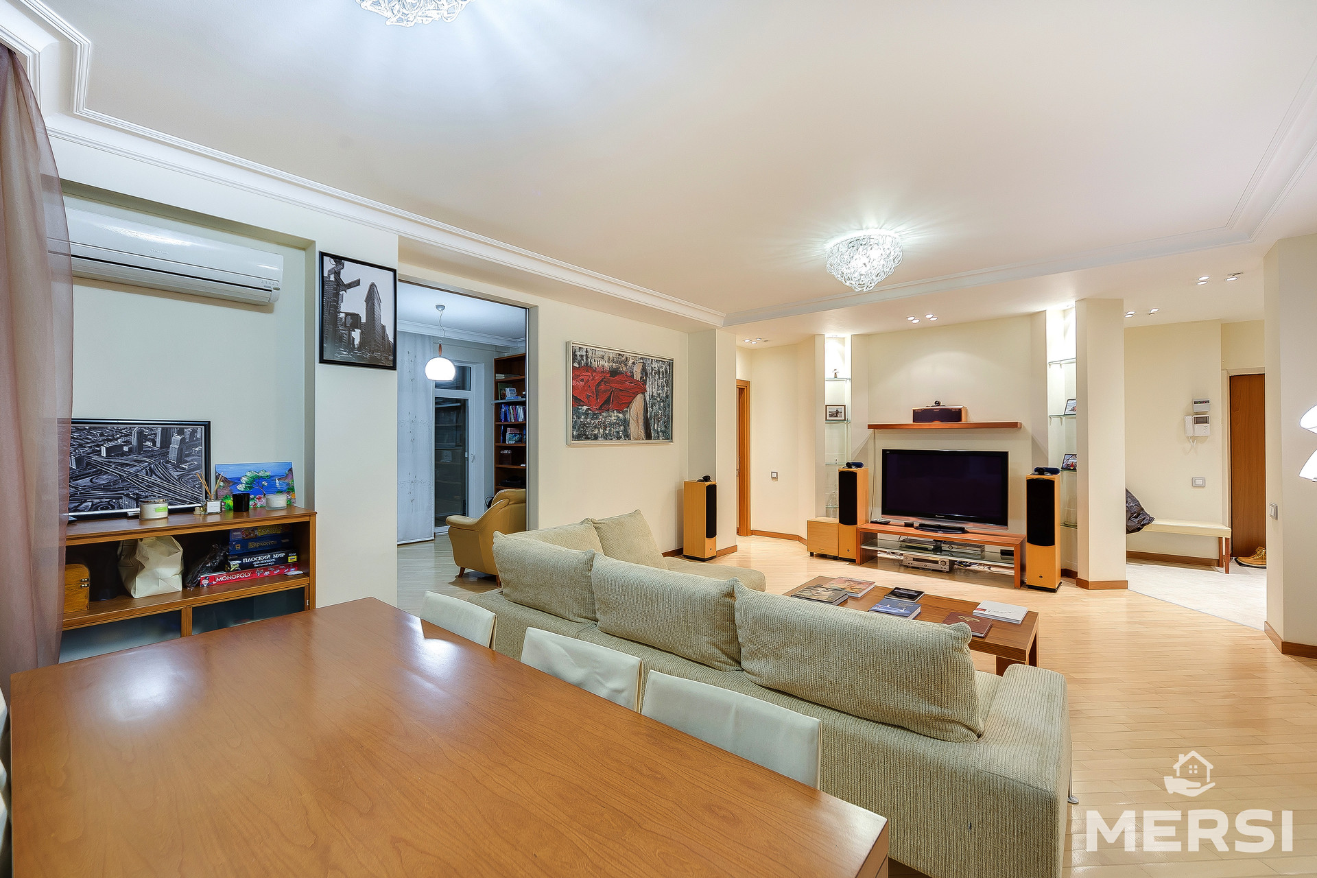 ПРОСТОРНАЯ, СТИЛЬНАЯ, современная квартира после качественного дизайнерского ремонта. Функциональная планировка - СТУДИО: кухня + гостиная, спальня, комната свободного назначения. Квартира полностью меблирована. Встроенная кухня, вся необходимая бытовая техника, в том числе посудомоечная машина. Система кондиционирования. Подогрев полов. Шкафы-купе. ГАРДЕРОБНАЯ КОМНАТА. Два полноценных санузла - ванна, душевая кабина. Застекленная лоджия. Великолепная панорама на город.