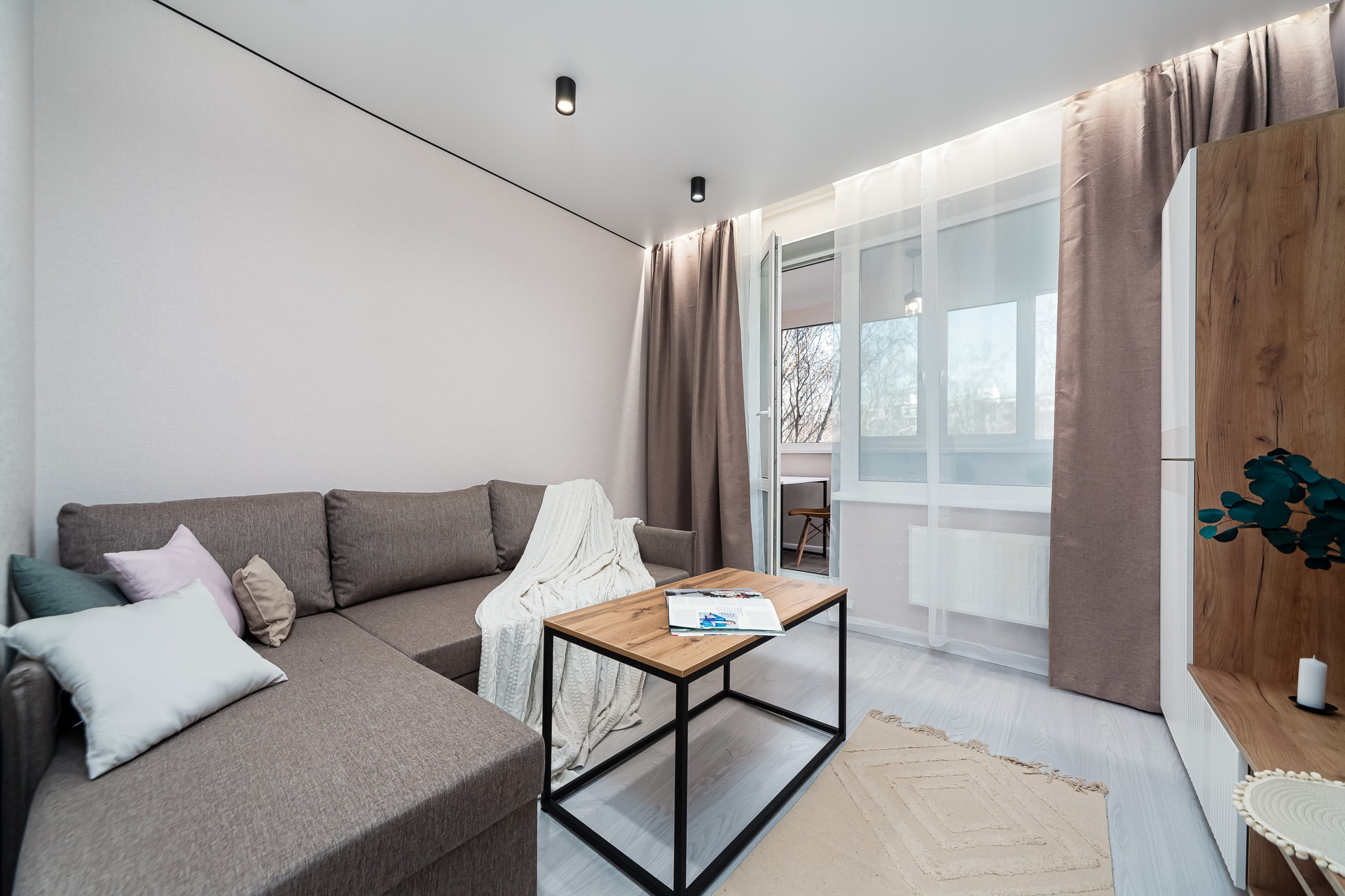 Новая дизайнерская двушка с мебелью. Площадь 43,5 кв.м + утепленная лоджия 5 кв.м. На лоджии, в ванной комнате и в прихожей теплые полы.  На лоджии сделан кабинет с выводом розеток и освещения. В квартире большая гардеробная, в которой при желании можно оборудовать рабочий кабинет или дополнительную комнату.