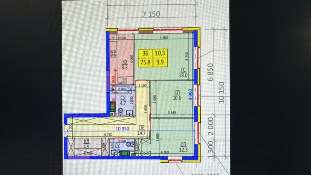 Общая площадь 77.5 м2