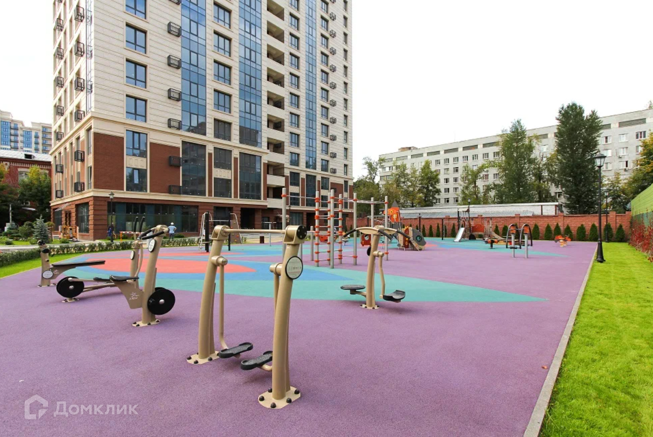 Территория комплекса благоустроена: имеется собственный двор-парк с ландшафтным дизайном для отдыха, прогулок и активного времяпрепровождения. Фонтан, детские площадки и зона воркаута. Реализована концепция «Двор без машин».