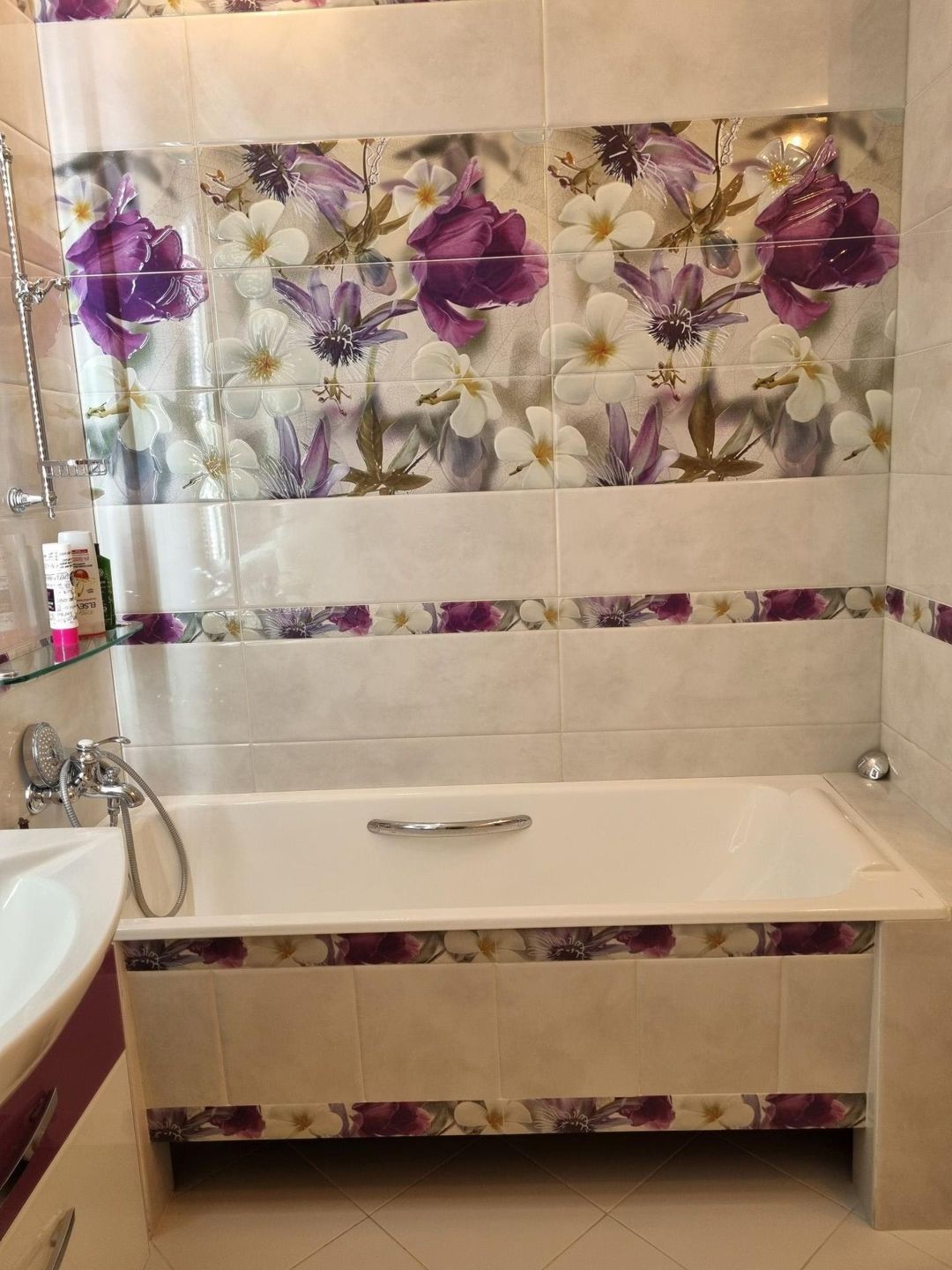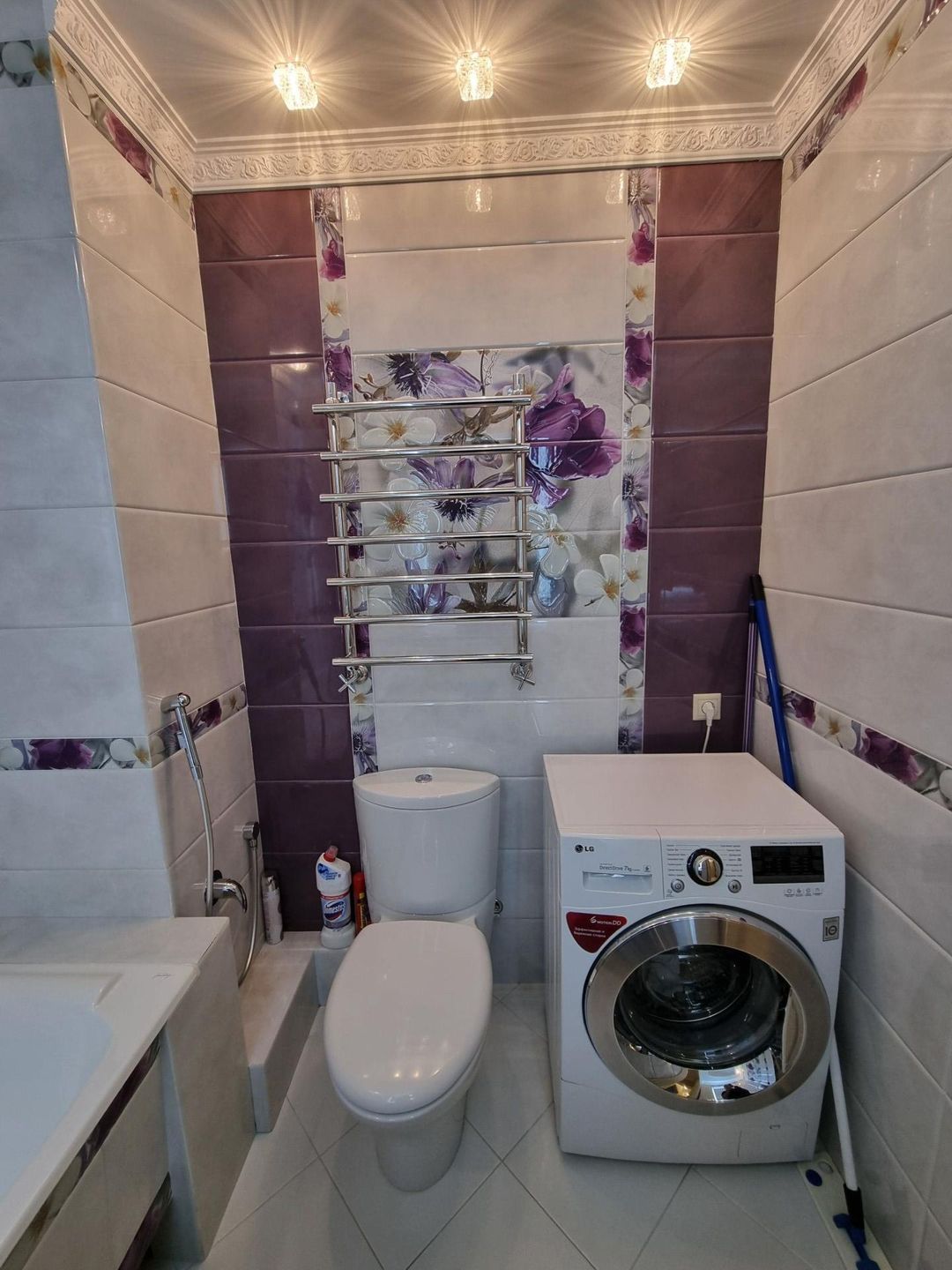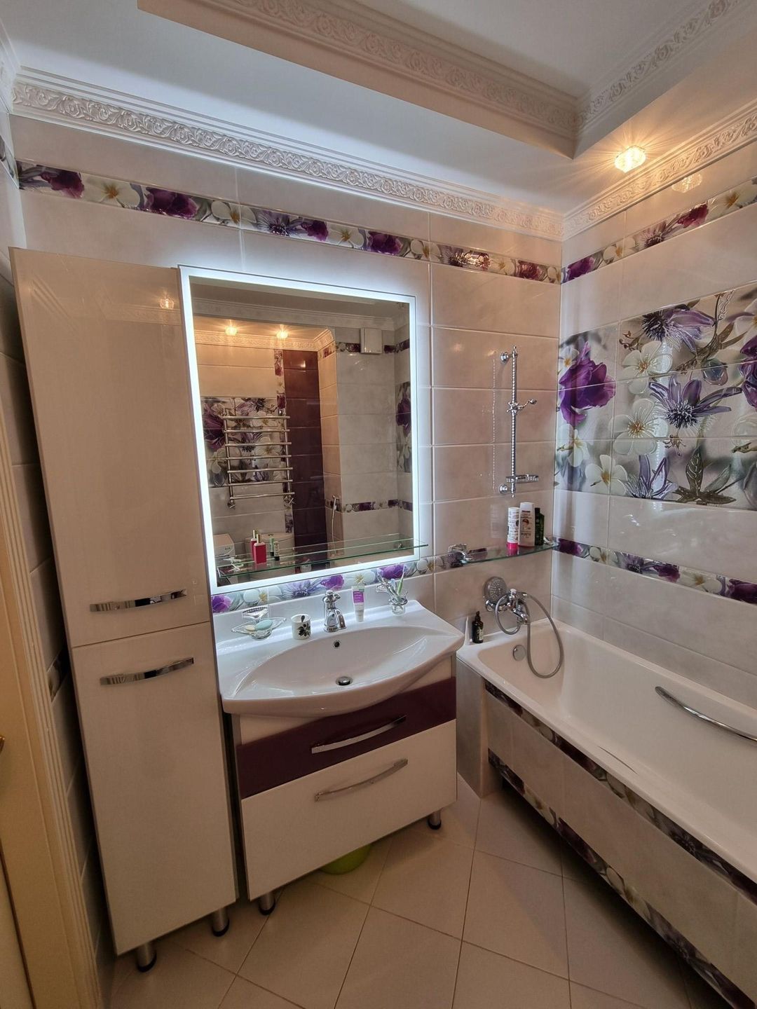 Свежий ремонт, тёплые полы, дополнительное интересное освещение, красивая дорогая сантехника, элитная импортная плитка.