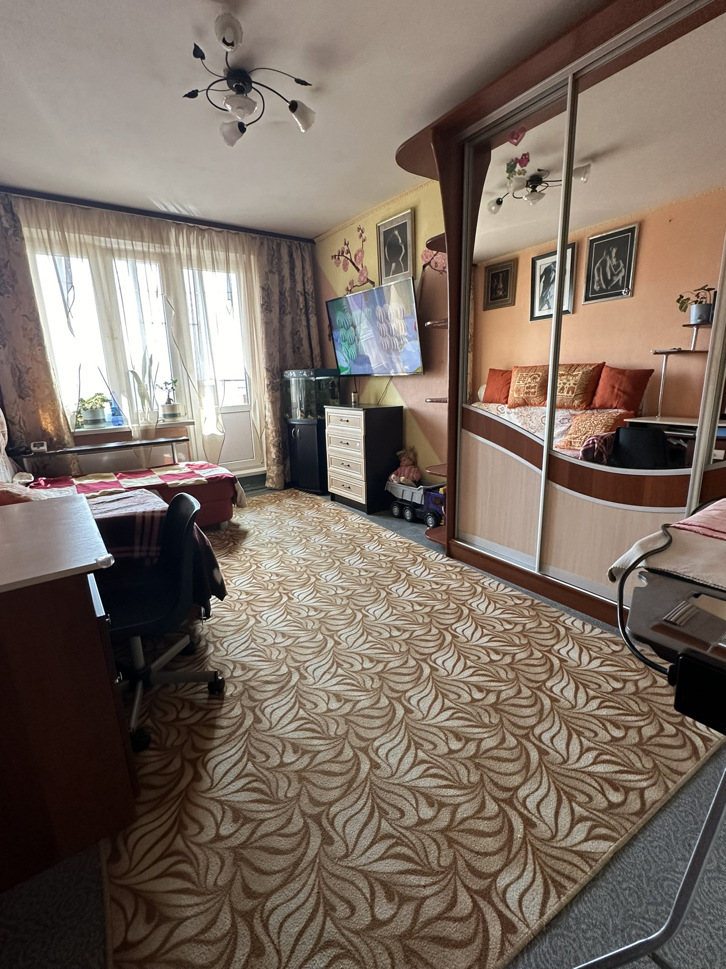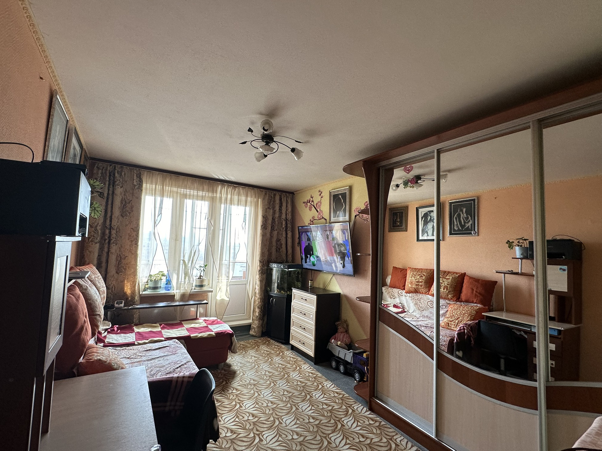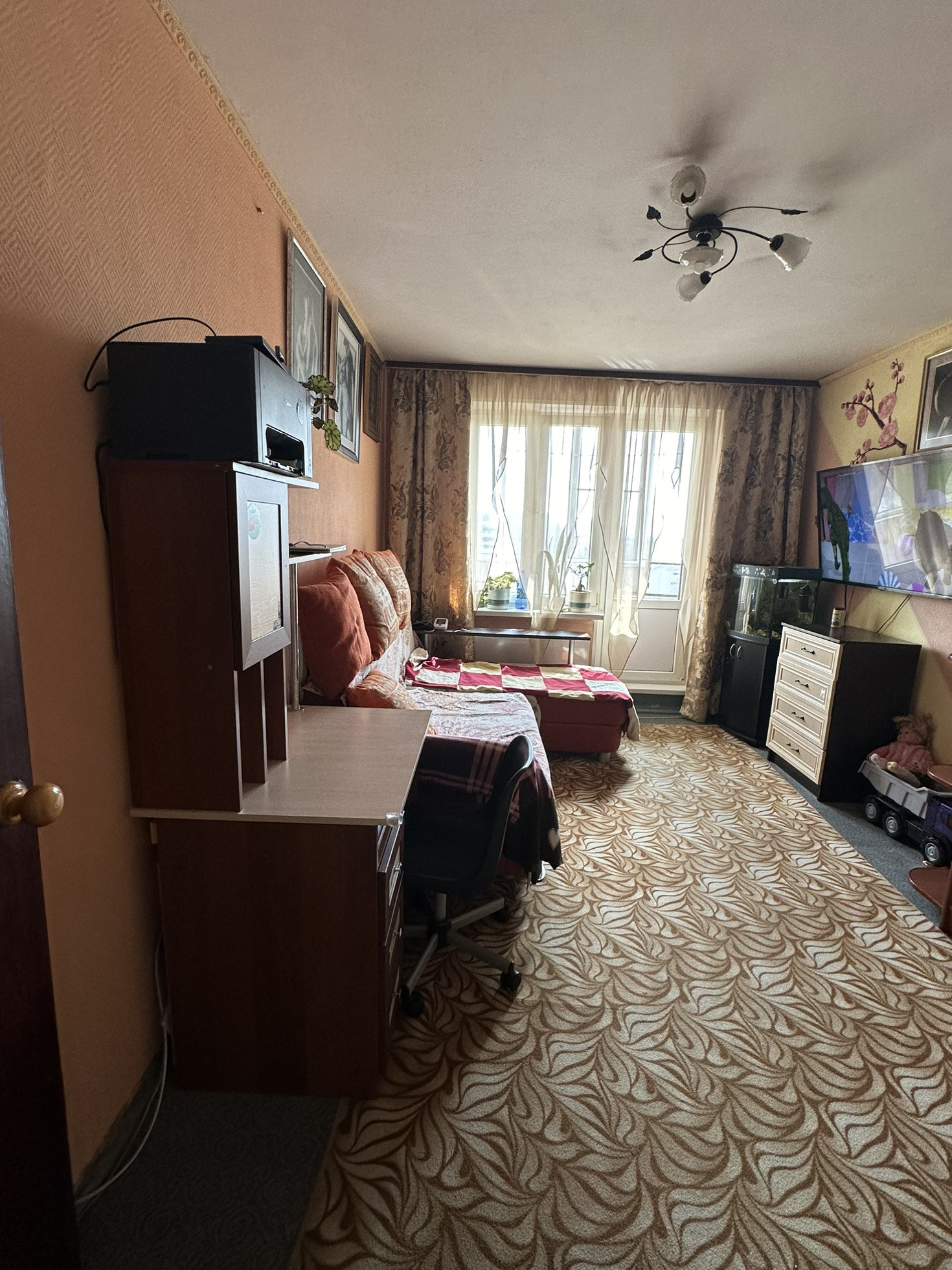 Состояние квартиры среднее, в одной комнате сделан качественный ремонт. Ванная и с/у в плитке.