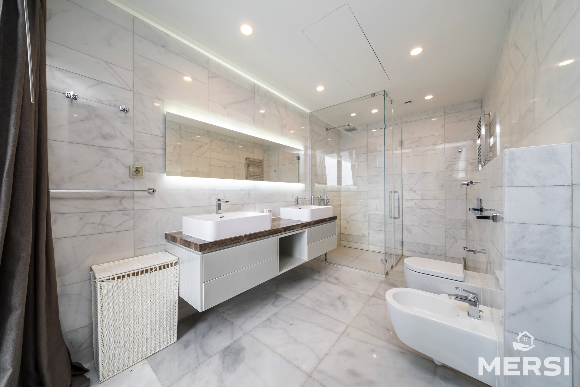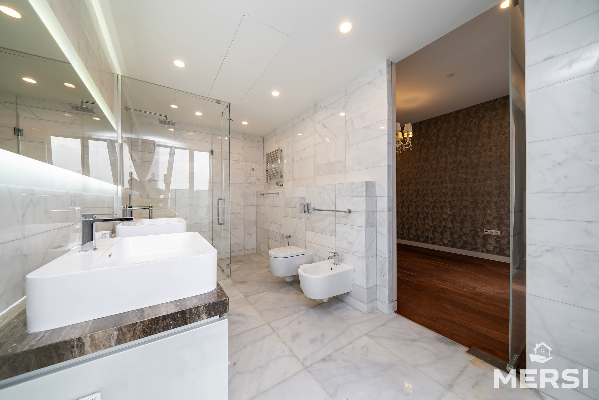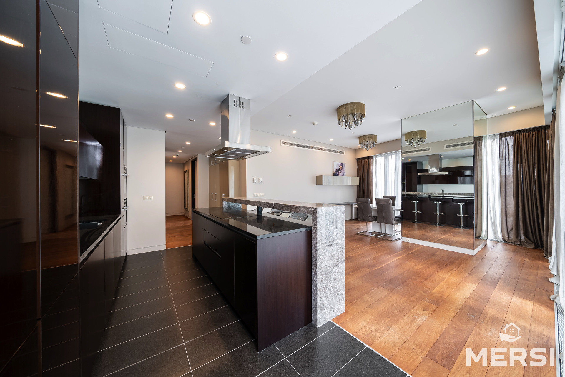 Функциональная планировка - СТУДИО: просторная кухня + гостиная, МАСТЕР-СПАЛЬНЯ со своим санузлом и ГАРДЕРОБНОЙ комнатой, гостевой санузел, постирочная.