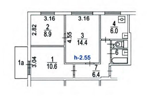 Высота потолков 2.5 м