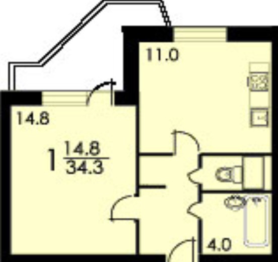 Балкон, лоджия 1 балкон