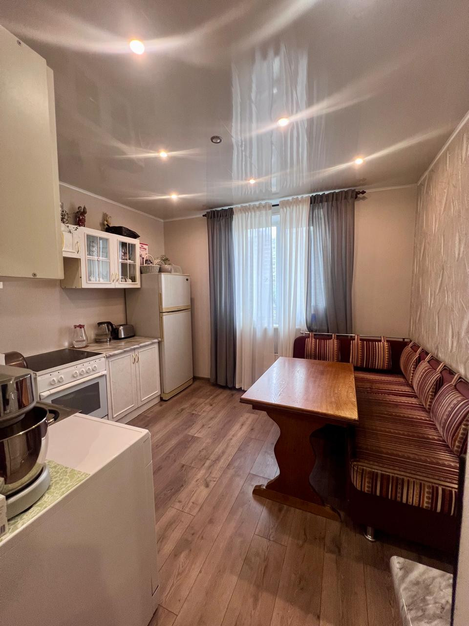 Прекрасная, солнечная и тёплая квартира с хорошим ремонтом.  Интересная и функциональная планировка. Просторная кухня 11 кв. м, комната с большой застеклённой лоджией. Вместительный сан/узел. Площадь без учёта лоджии 34 кв. м. Чистый подъезд с консьержем. Дом серии ПД-4 с повышенной теплоизоляцией. Тихий, уютный двор. В 1 мин пешком - лесопарковая зона с прудами, экологической тропой на берегу реки, площадками для отдыха.