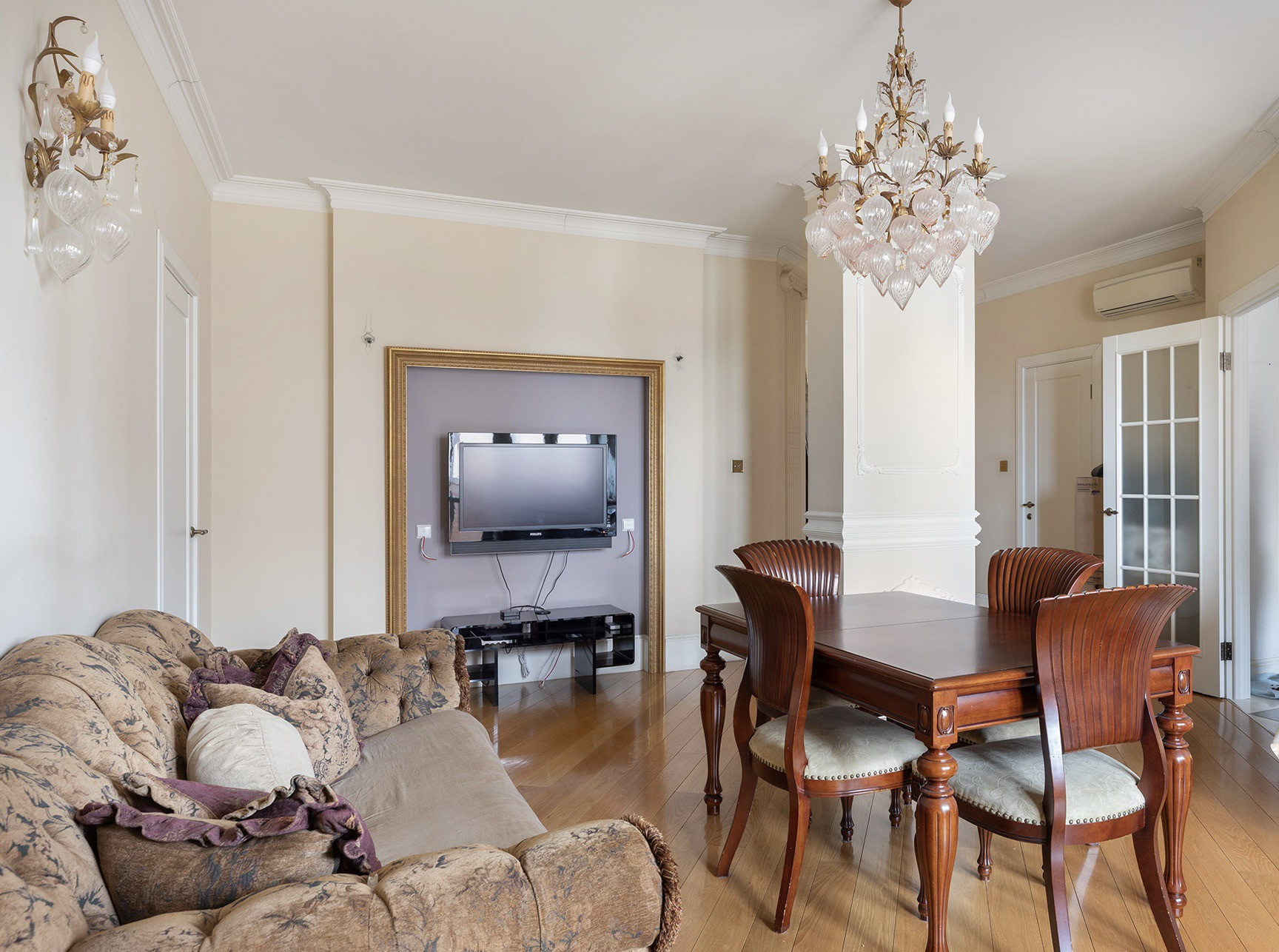 Удачная планировка: три комнаты- просторная гостиная, спальня и кабинет. Два шикарных санузла евростандарт, большая кухня, две лоджии. Ремонт в квартире выполнен по индивидуальному дизайн-проекту из высококачественных материалов. Вся мебель итальянская и техника от импортных производителей, есть все необходимое для комфортной жизни. Кухня Scavolini, Baltimora, Italy; Техника Smeg. С/у Devon&Devon, Versace /вся плитка/, Italy. Rosbri, England. Полы - массив дуба Junckers. Кондиционеры Daikin. Входная дверь Trezor, Italy. Подоконники мрамор/ испания, греция. Полотенцесушитель Margaroli. Радиаторы Германия. Окна квартиры выходят на солнечную сторону, что обеспечивает естественное освещение и создает приятную атмосферу.