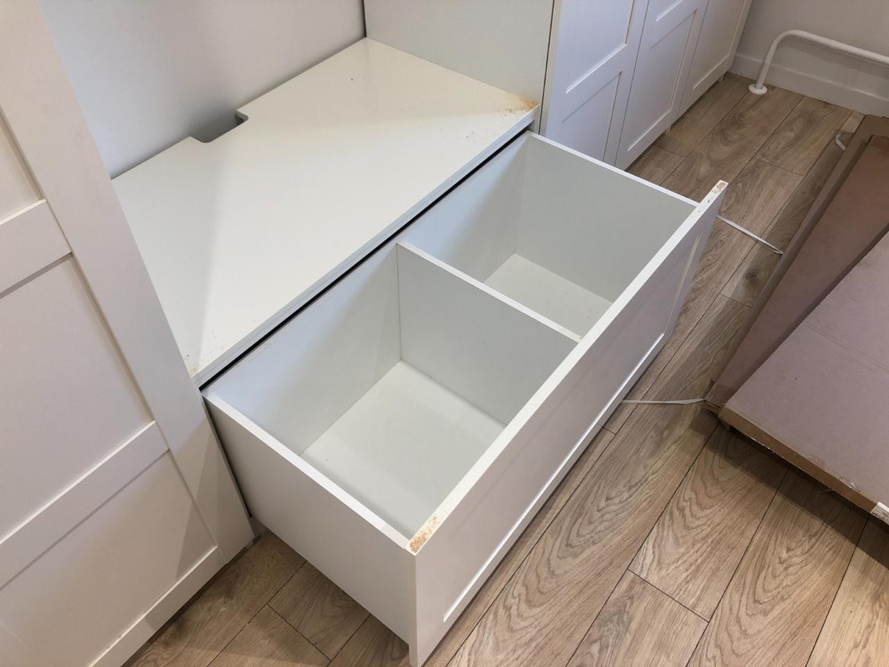 В квартире при продаже остается: встроенные шкафы, стиральная машина, кухонный гарнитур, встроенный холодильник, варочная панель и вытяжка, прикроватные встроенные тумбы, подвесные полки, три кондиционера, морозильная камера на балконе, рулонные шторы на окнах (штора в маленькой комнате электрическая), установлена сигнализация Гольфстрим