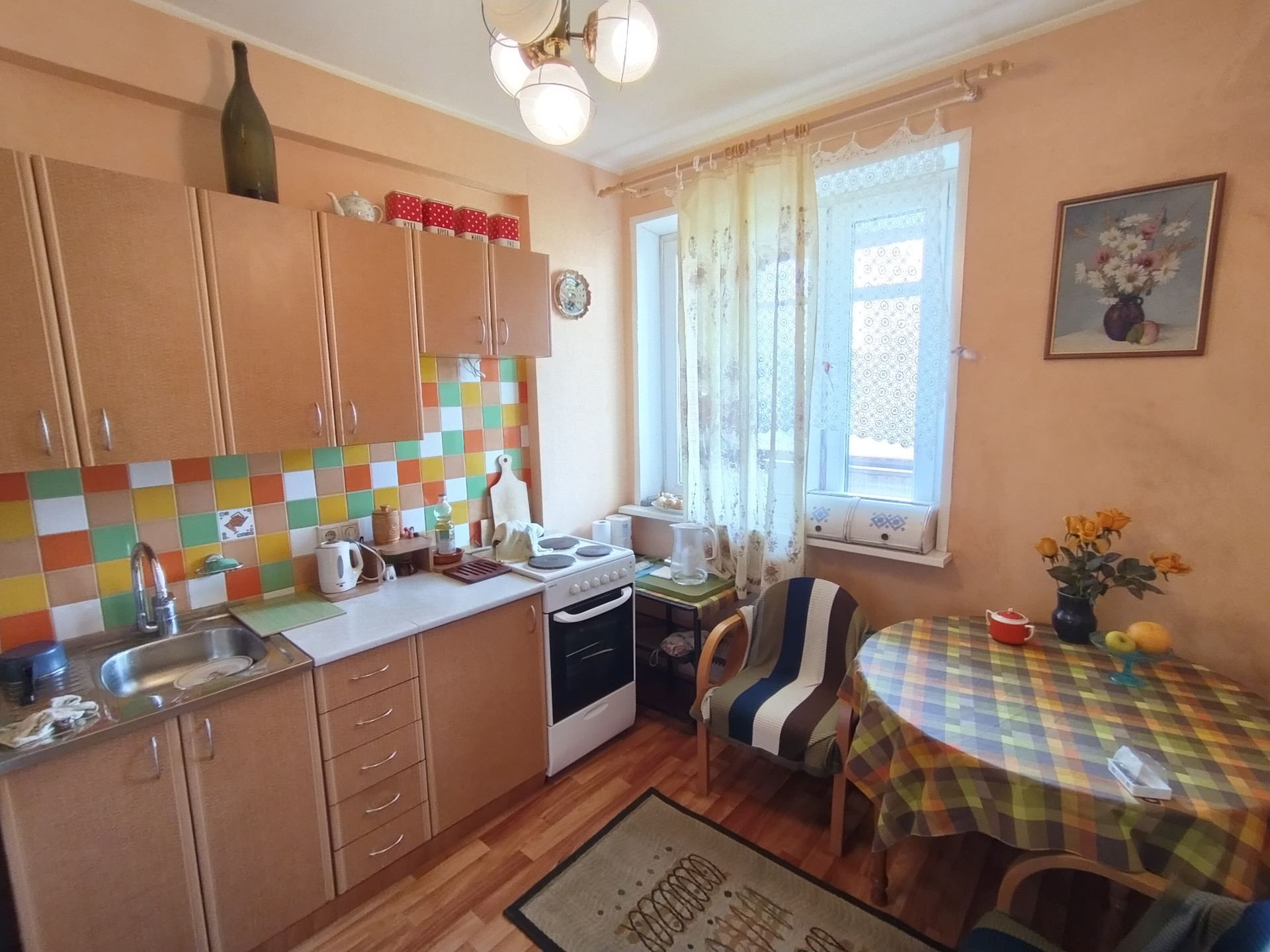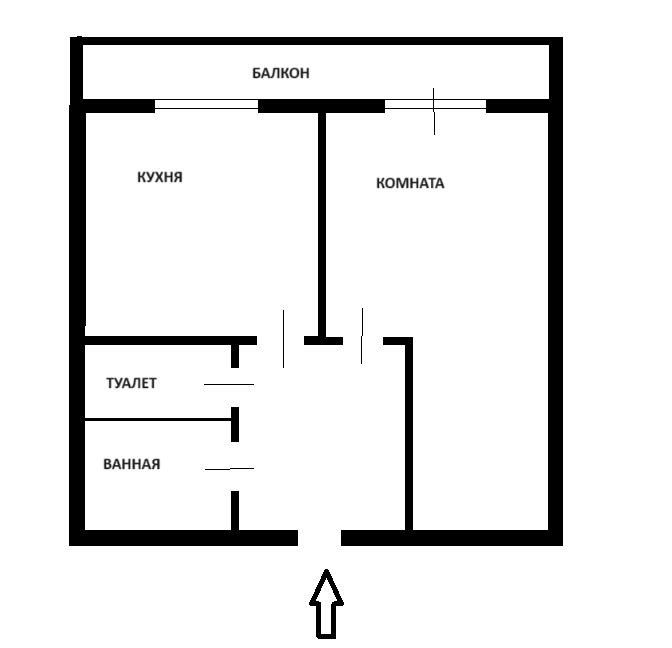 Общая площадь – 35 кв.в., комната – 17,5 кв.м., кухня – 8 кв.м.