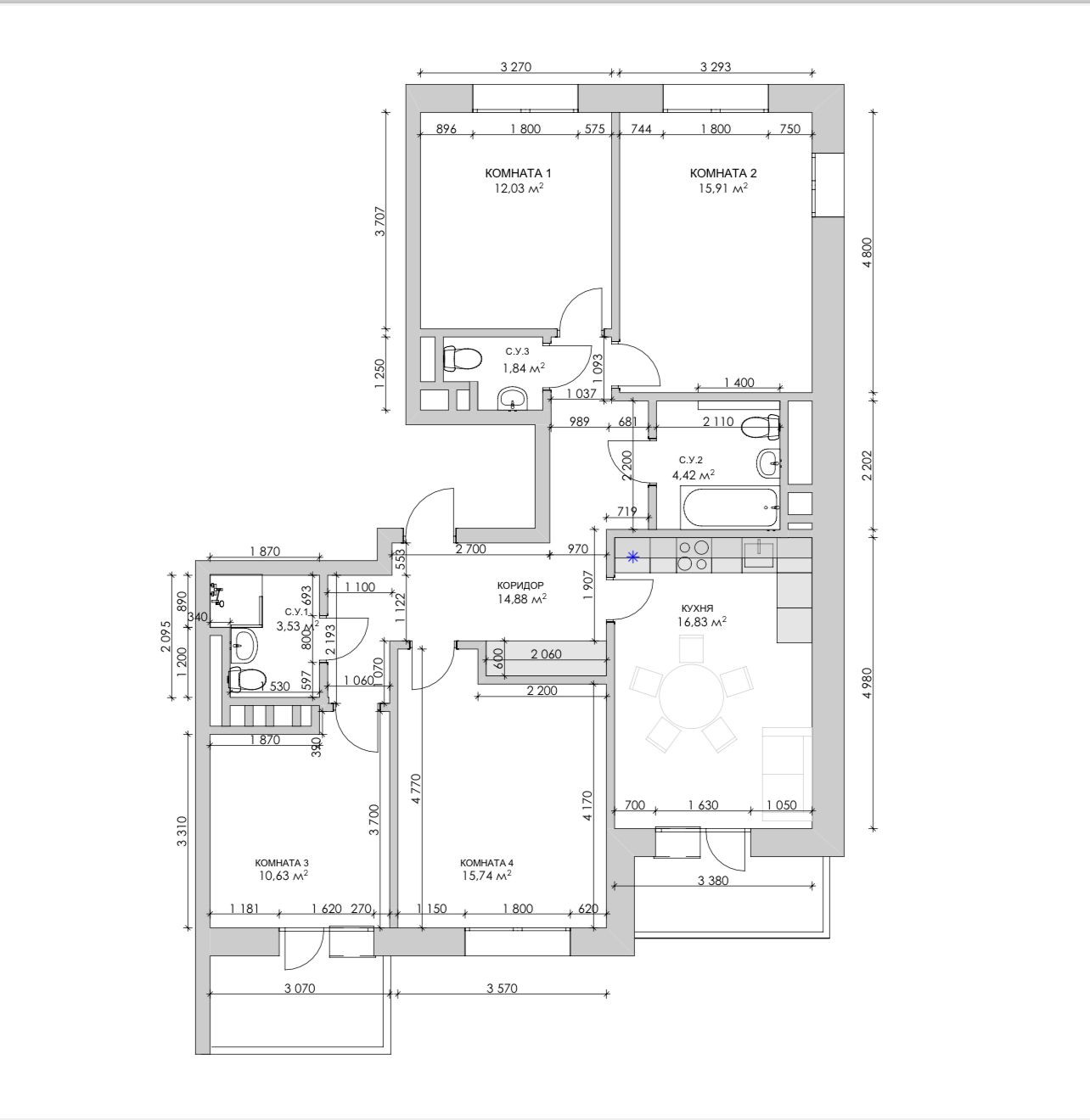 В квартире 2 панорамные большие лоджии, выход на одну из них с кухни, что максимально удобно. 3и санузла (один из которых можно переделать под прачечную).