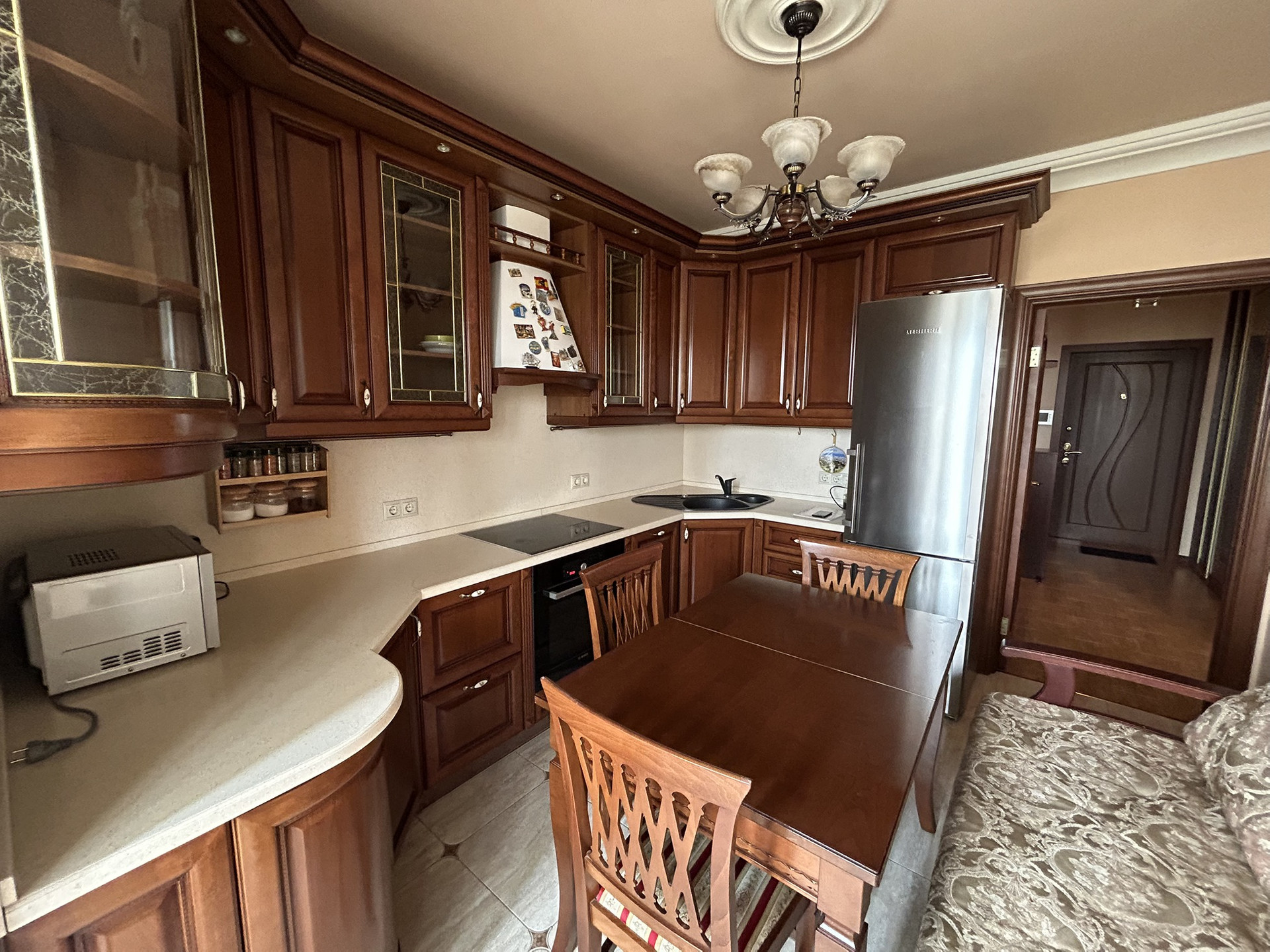 В квартире остаётся вся мебель ( кухонный гарнитур+ встроенная бытовая техника Bosch, спальные места и место для хранения одежды).