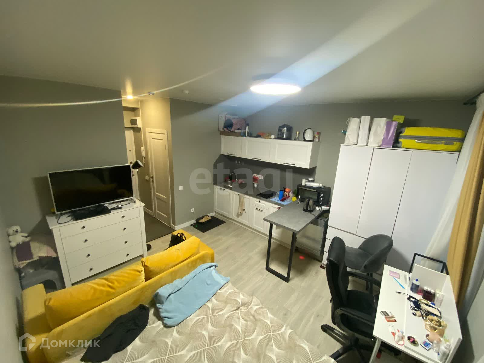 Предлагаю апартаменты-студию с современным ремонтом, в комнате обои под покраску, на полу ламинат, санузел совмещен отделан кафельной плиткой.  Установлены электрический счетчик и приборы учеты водоснабжения, также в 2022 году был выполнен капитальный ремонт во всем доме с заменой всех коммуникаций.