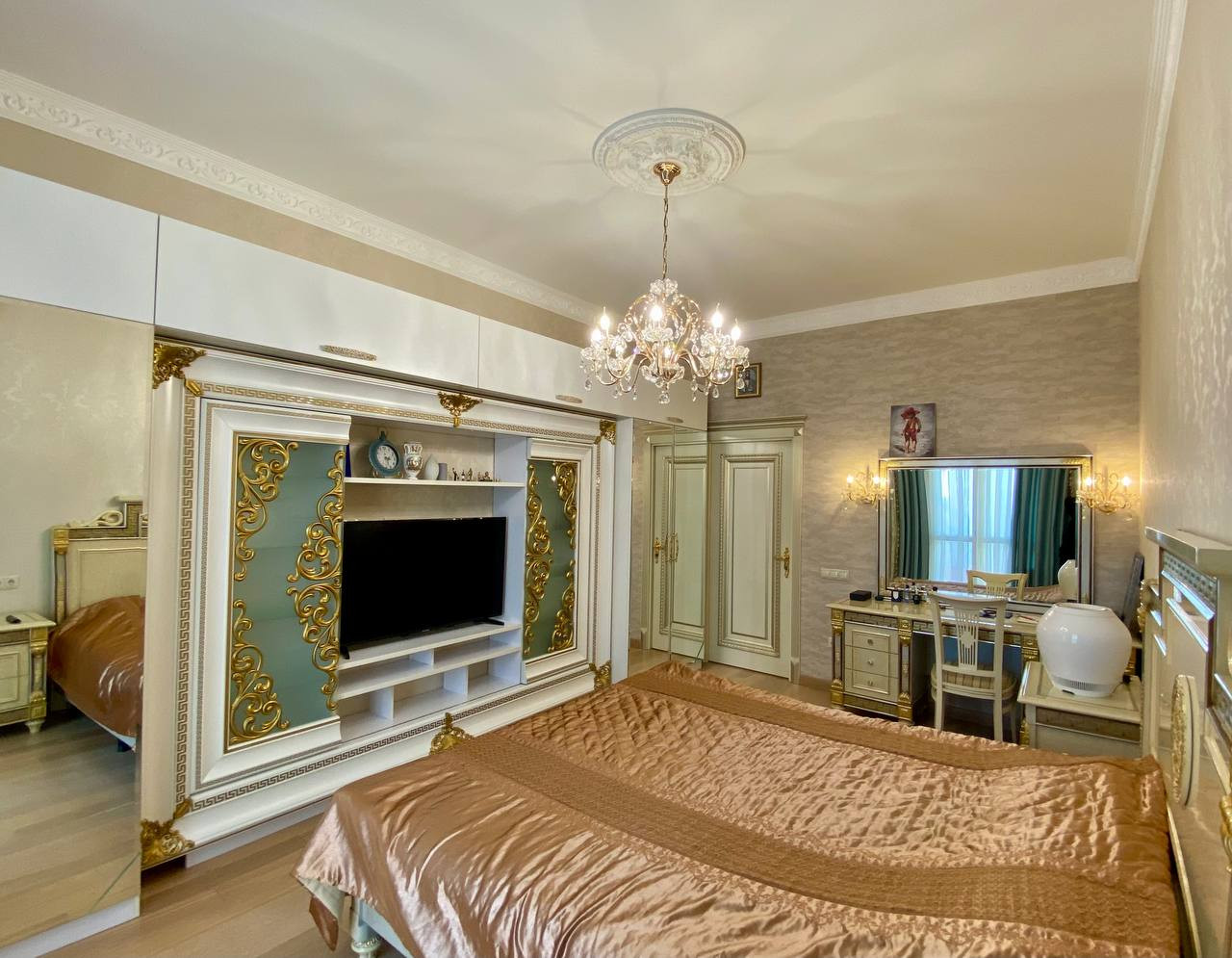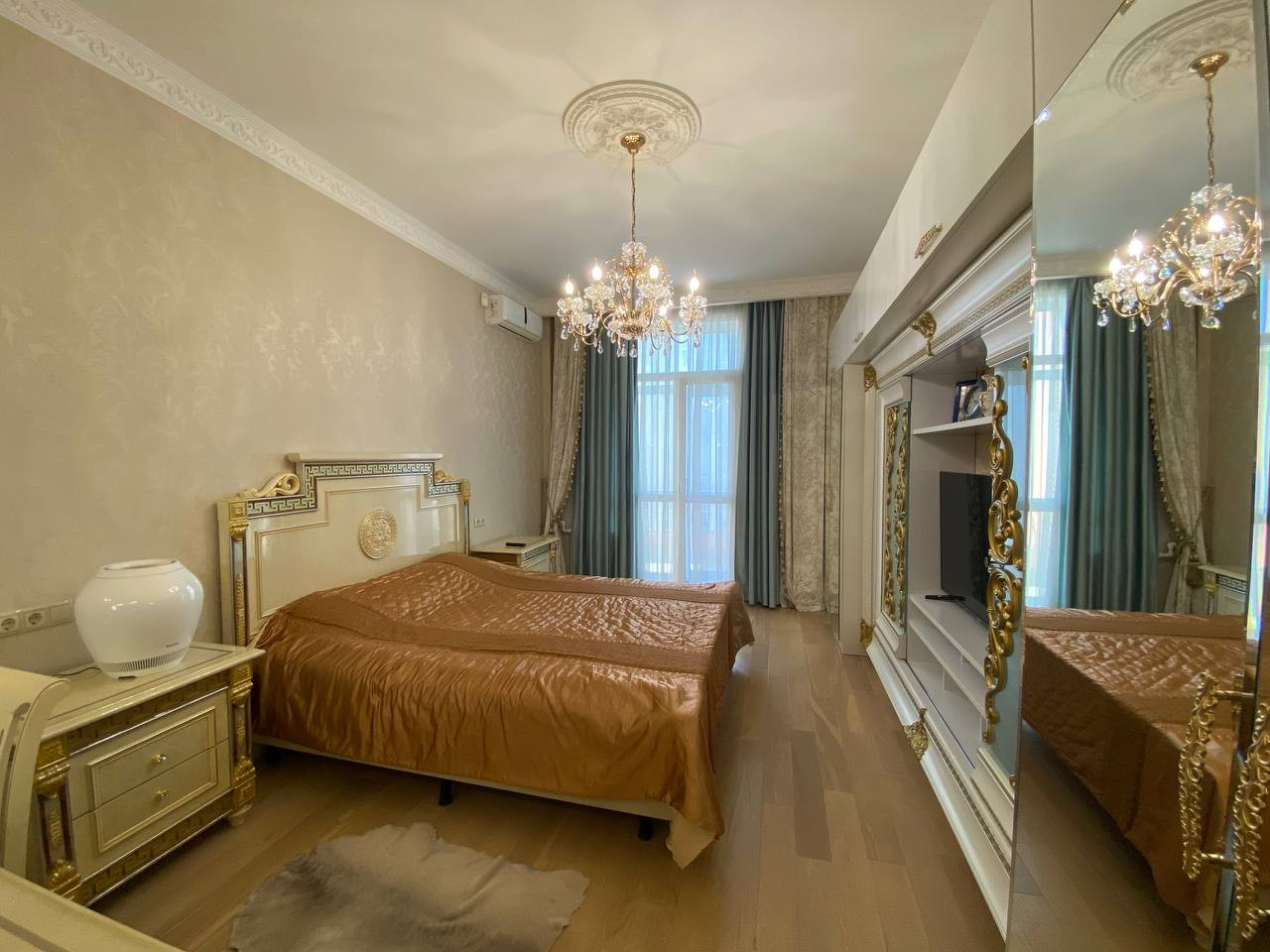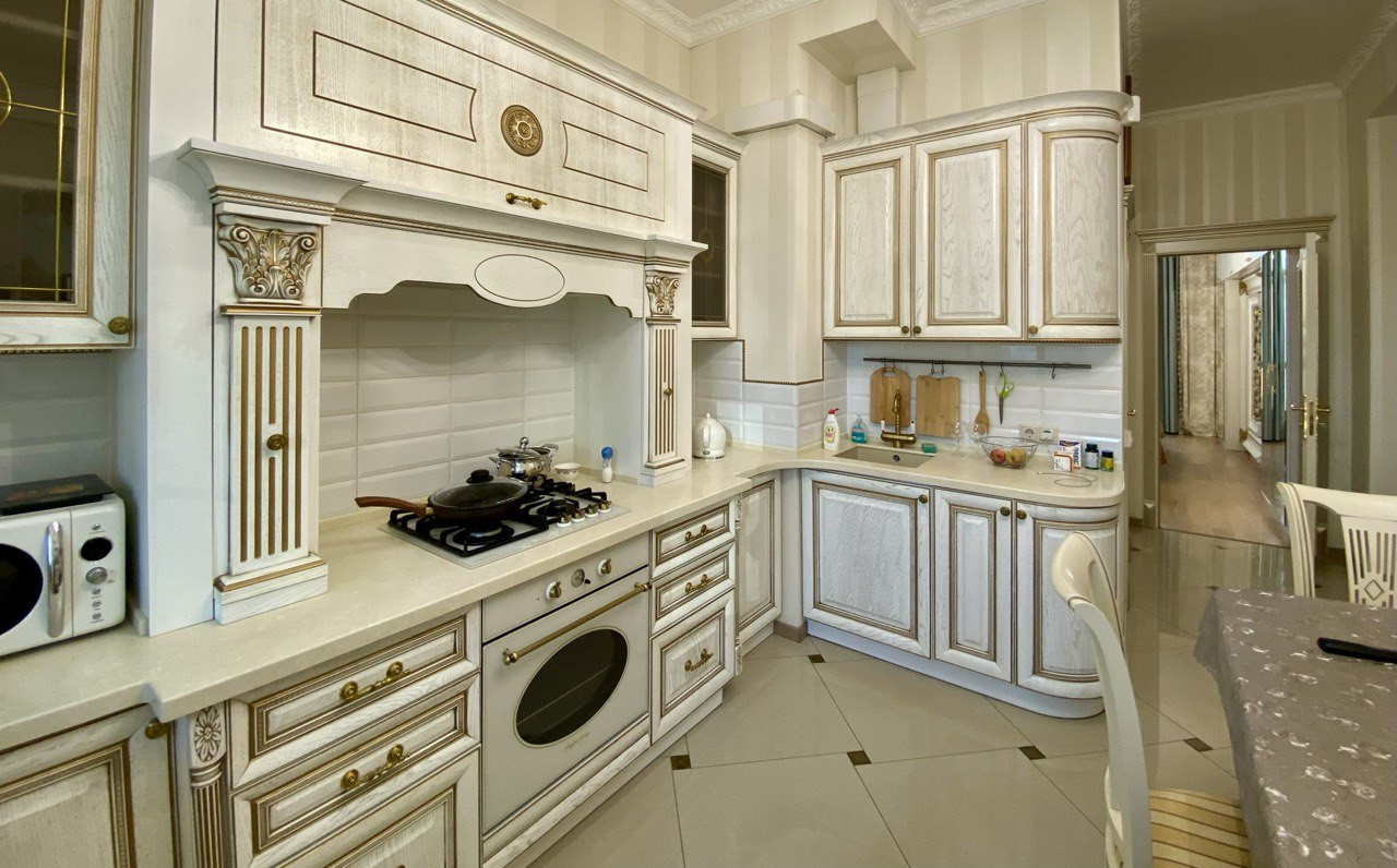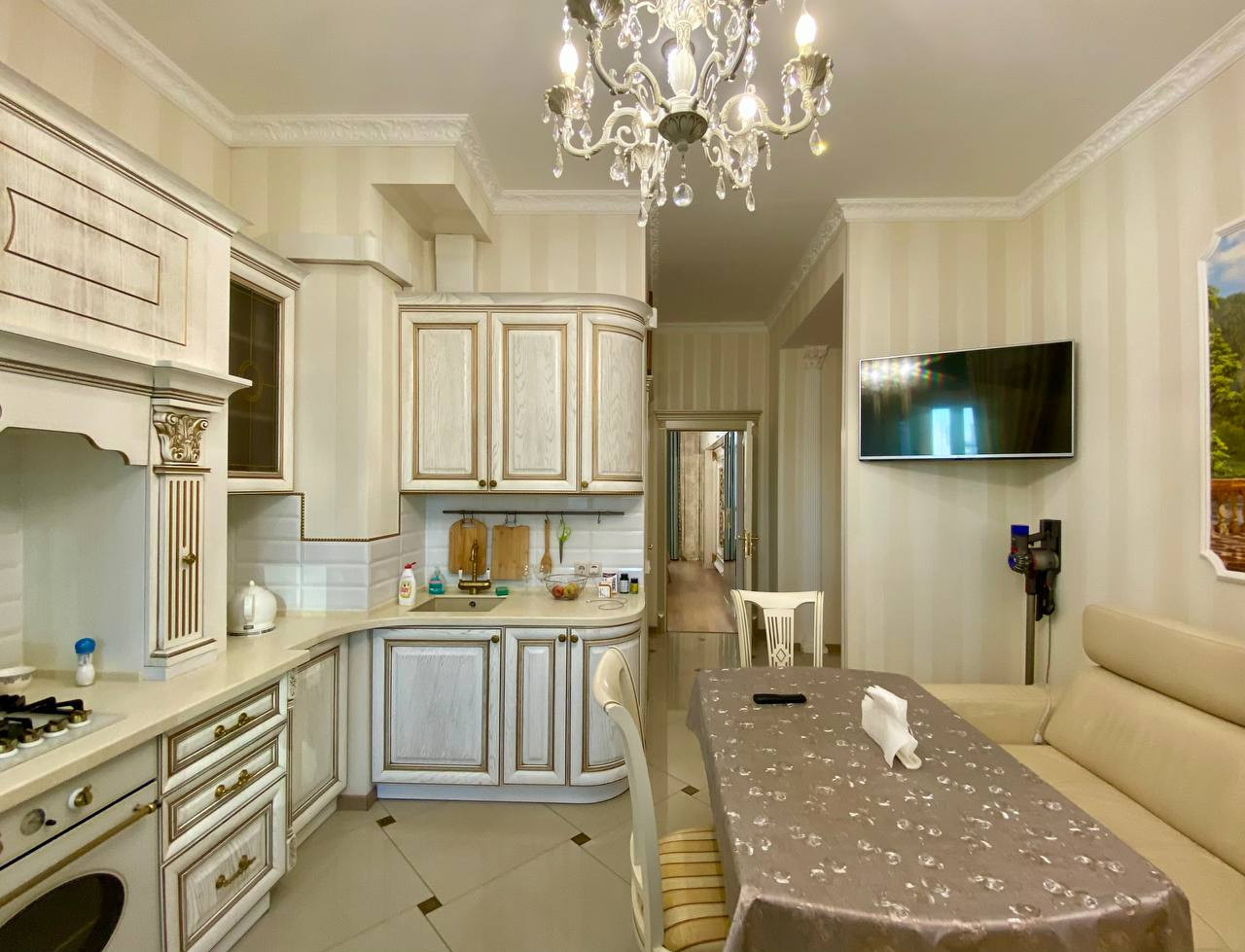 Квартира имеет отличную планировку - распашонка, большие окна и высокие потолки 3,30 метра. Дизайнерский качественный ремонт. Две изолированные комнаты и просторная кухня гостинная.