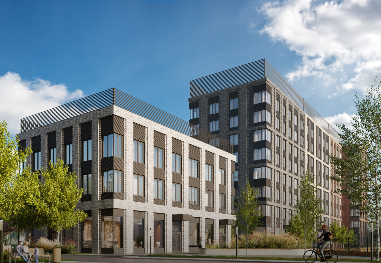 Дом бизнес-класса в ЖК Фестиваль Парк-2  с монолитно-каркасным конструктивом, Вентилируемые фасады SPEECH, Благоустроенная придомовая территория, концепция двор без машин. Входы в подъезды на уровне земли, комнаты для хранения велосипедов и колясок в лобби 1 этажа, Дизайнерская отделка входных групп и общественных зон