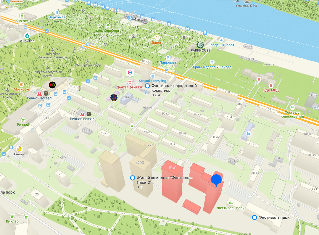 За чистый воздух отвечают водохранилище и сразу несколько обширных парков вокруг, а высокий уровень жизни обеспечивается всем остальным  рядом многочисленные супермаркеты, рестораны, кофейни, аптеки, химчистка, почта, школы, сады, просторные детские площадки и ухоженные дворы соседних домов. Неподалеку парк с выходом к реке  парк Северного Речного Вокзала