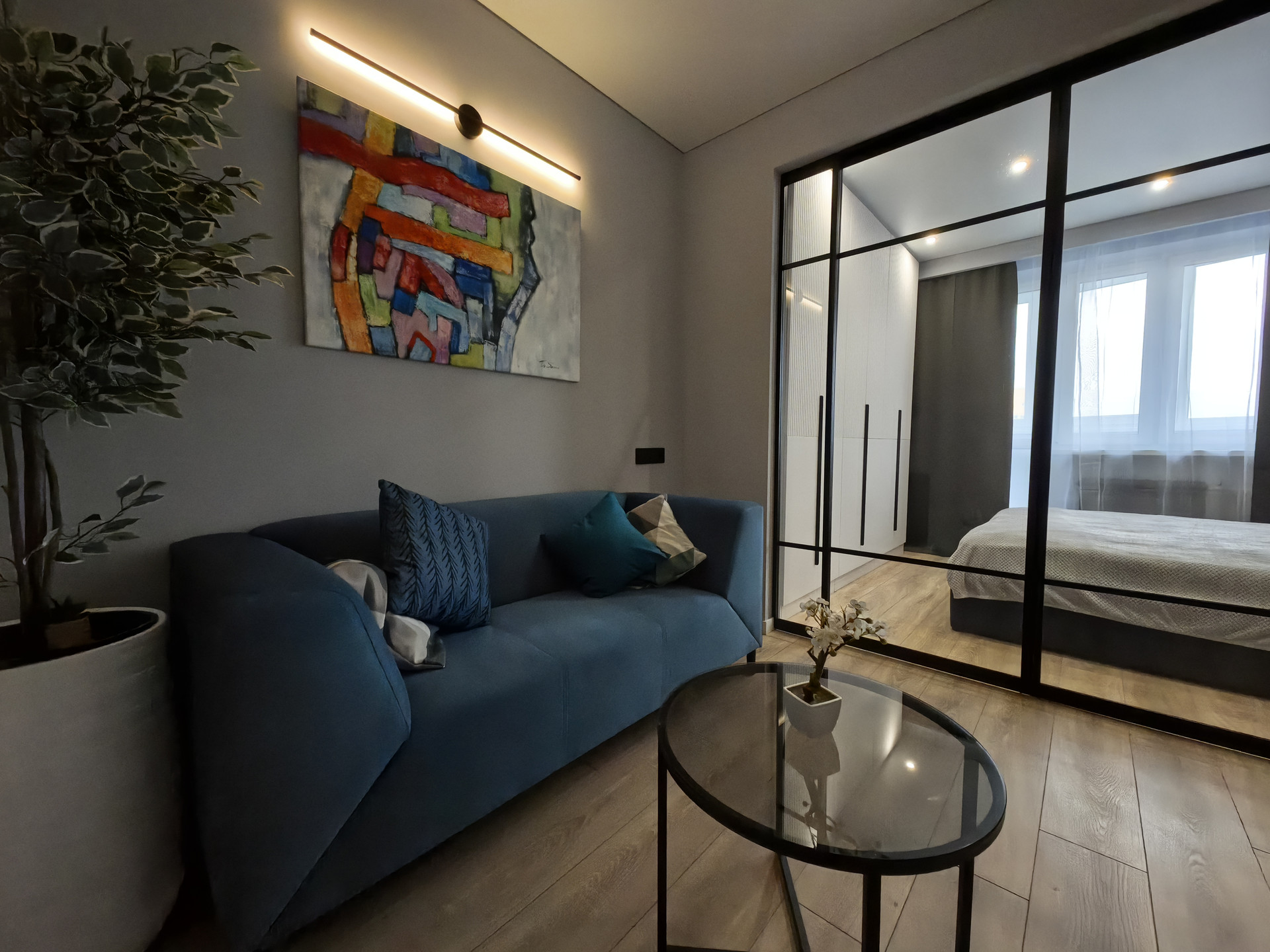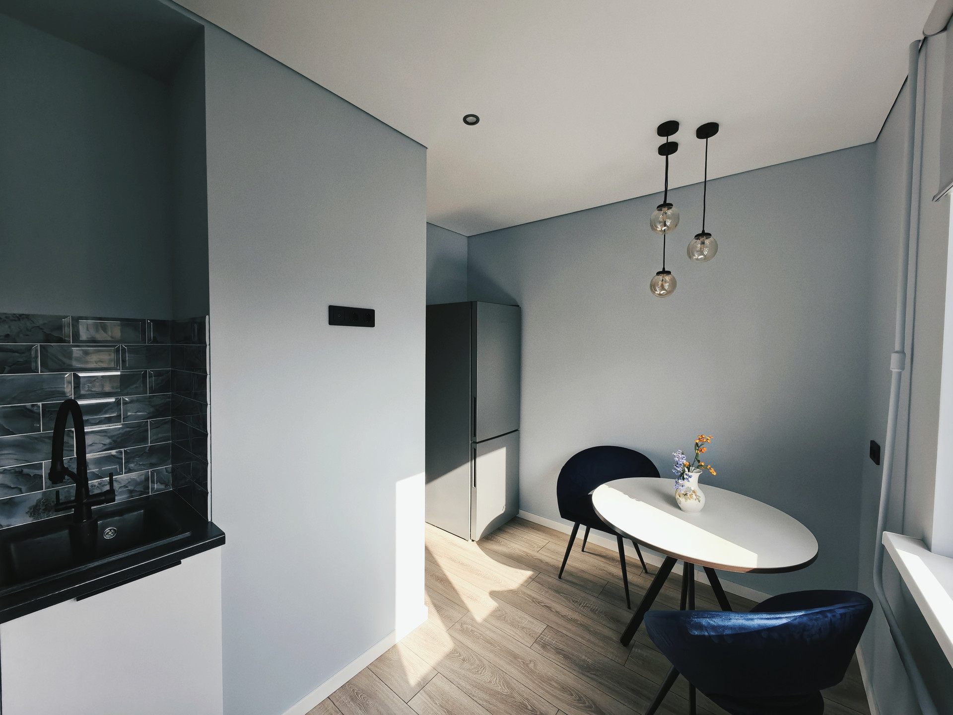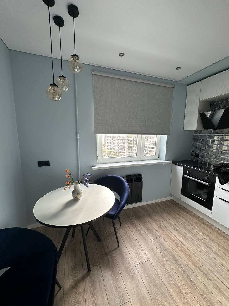 После окончания ремонта никто не жил. Все новое и стильное. Установлена новая, качественная, встраиваемая техника. Новая мягкая мебель. Сделаны большие встроенные шкафы и еще несколько мест для хранения. Встроенный кухонный гарнитур, укомплектованный всем необходимым. Сплит-система и многое другое.