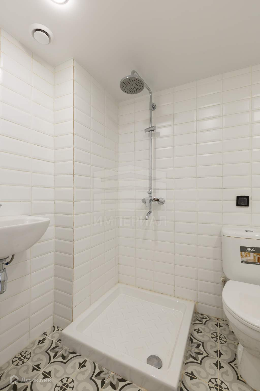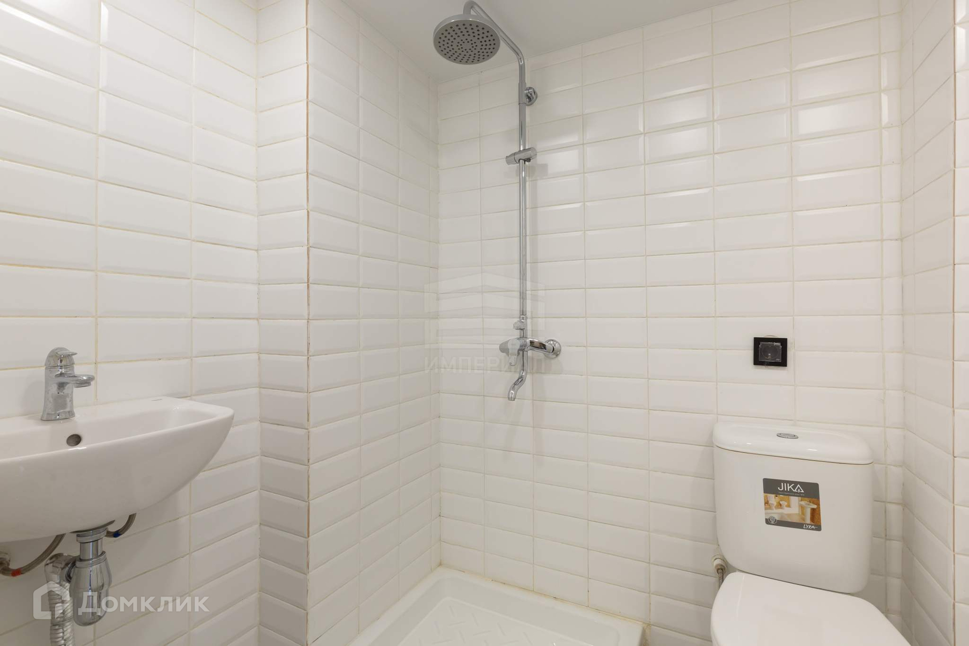 Современная импортная сантехника  душевой поддон, раковина, унитаз с гигиеническим душем, электрический полотенцесушитель.