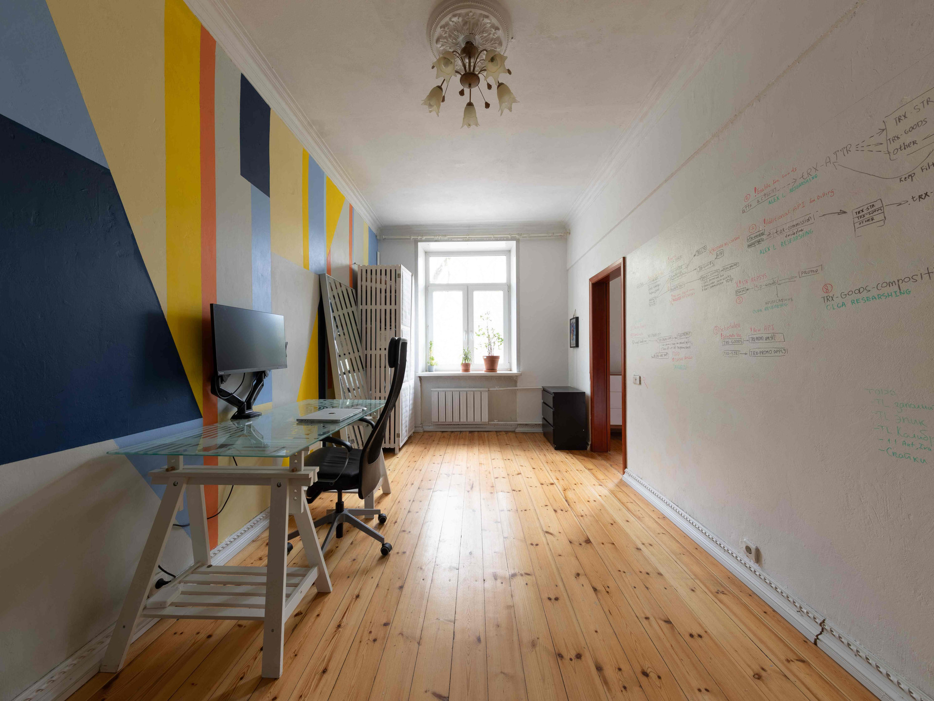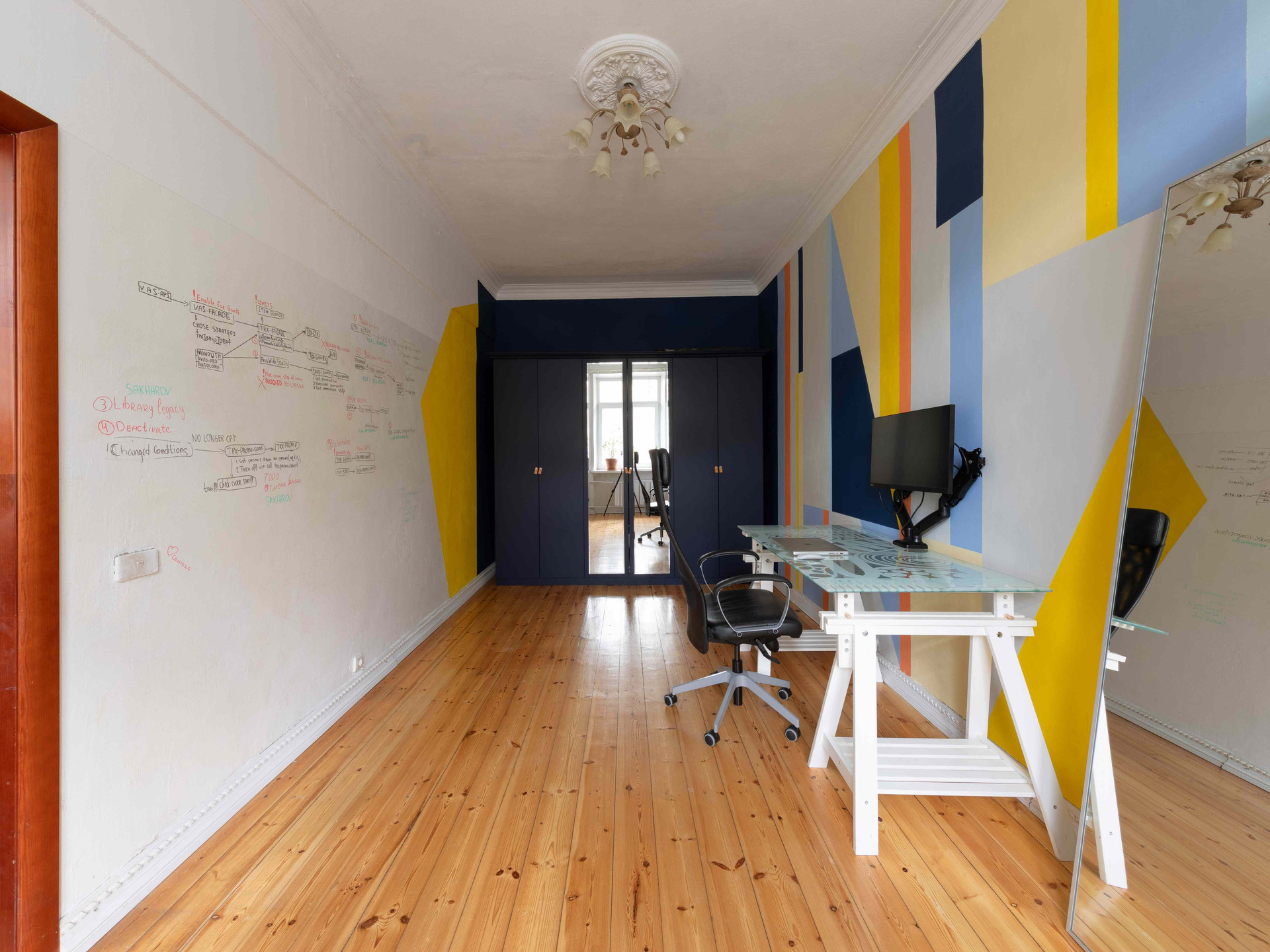 Кабинет (или спальня) с маркерной стеной.