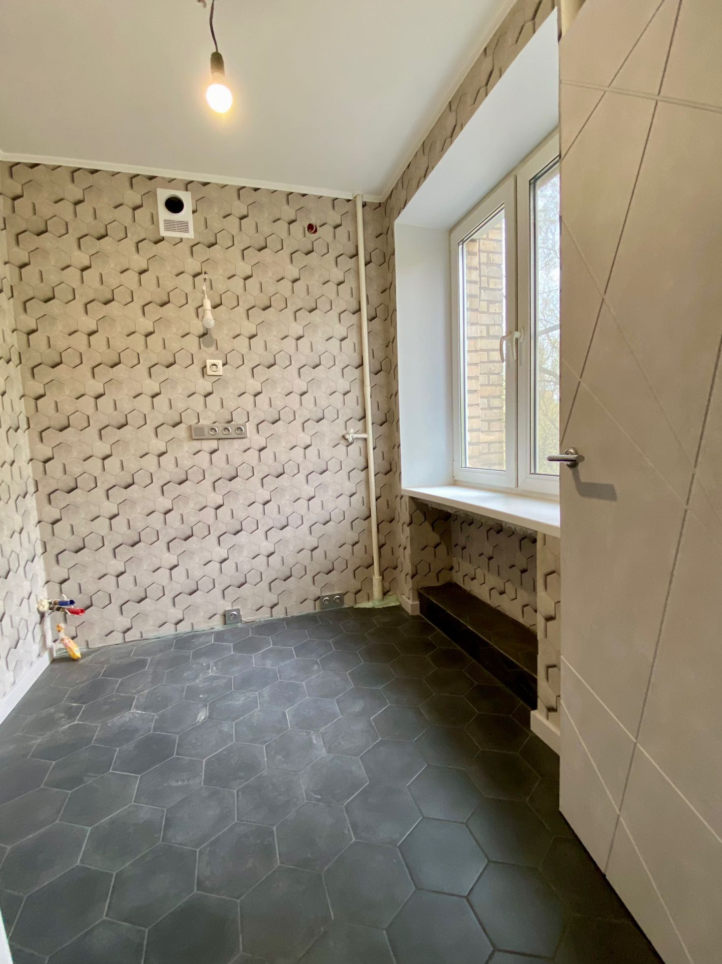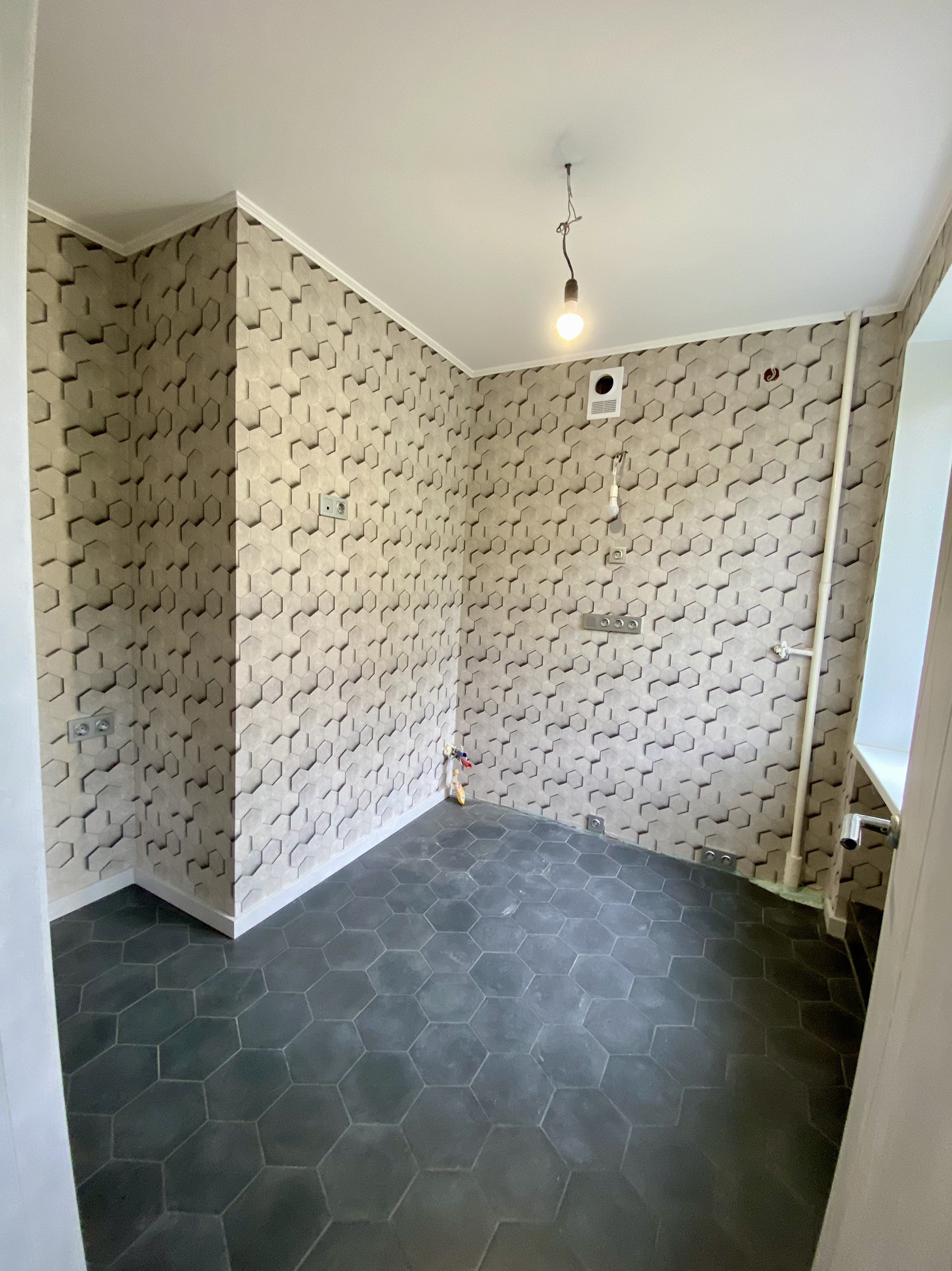 - на полу кухни, туалета, ванной и в части коридора уложена новая гидроизоляция