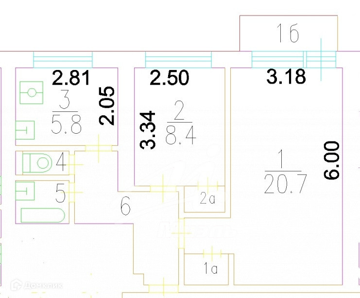 Балкон, лоджия 1 балкон