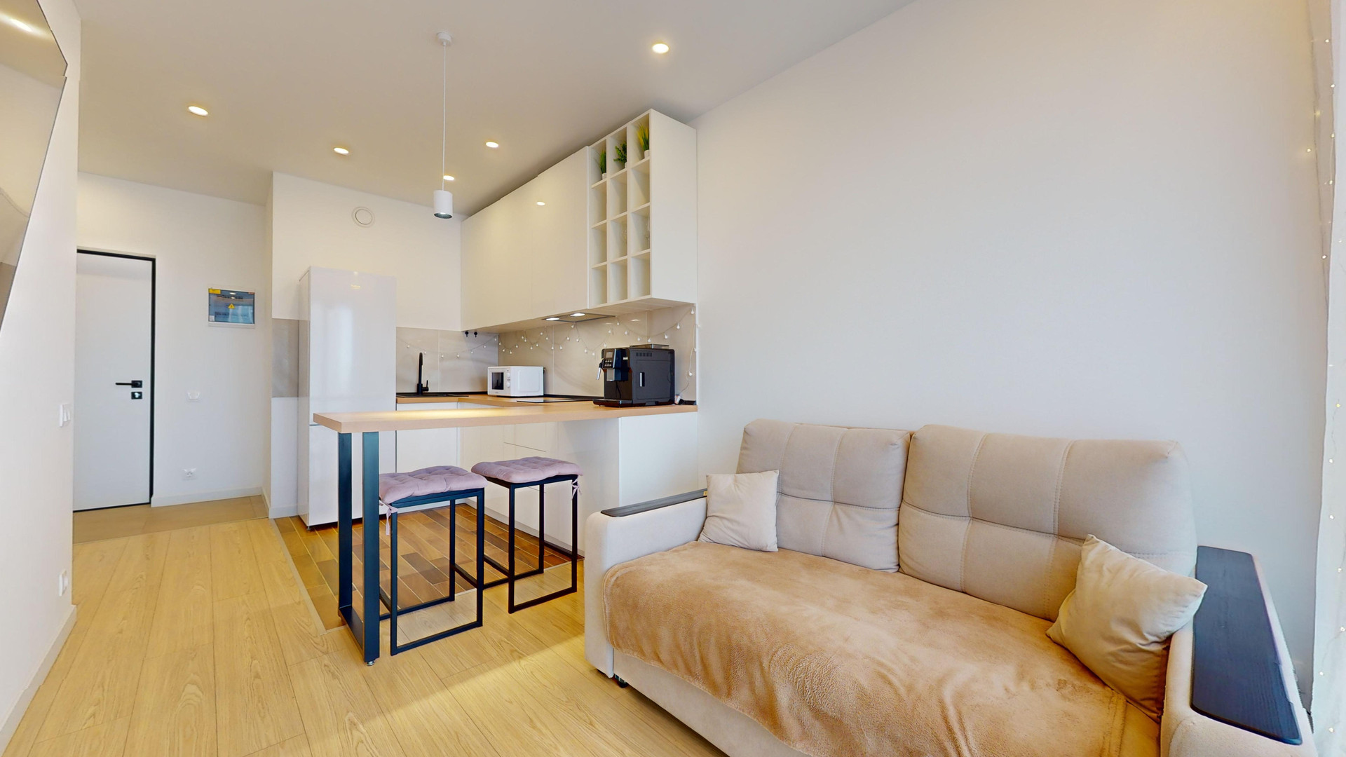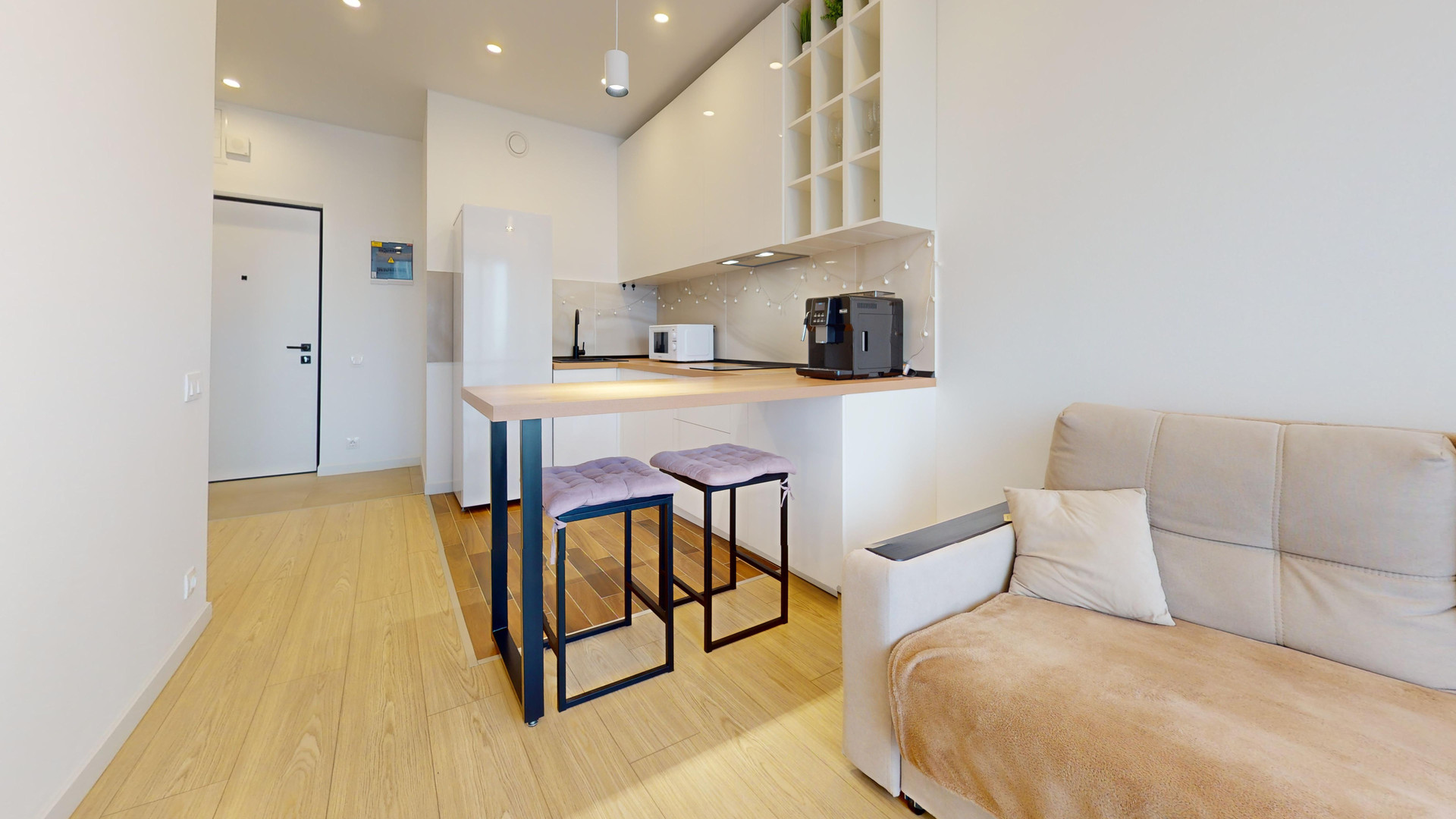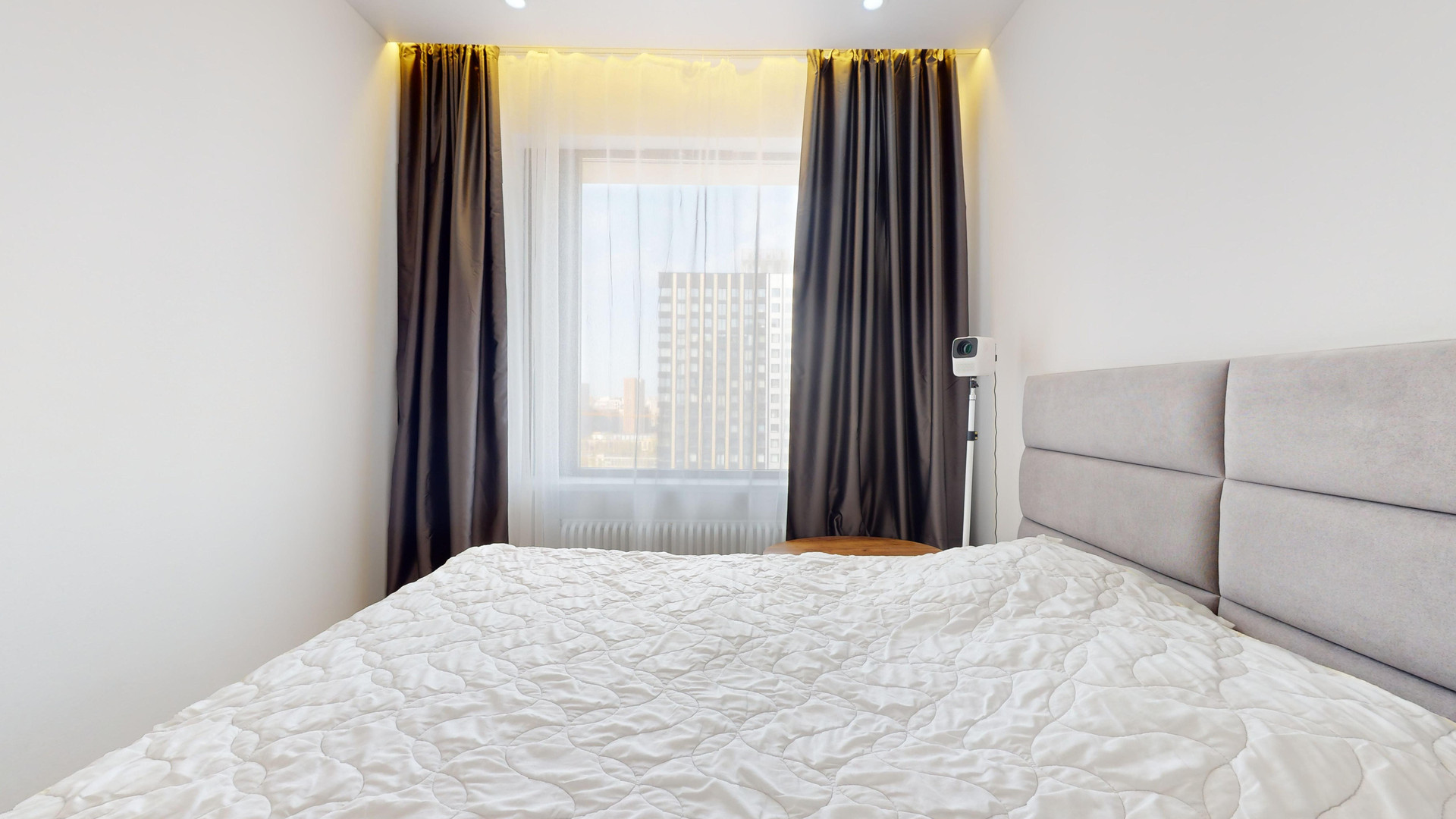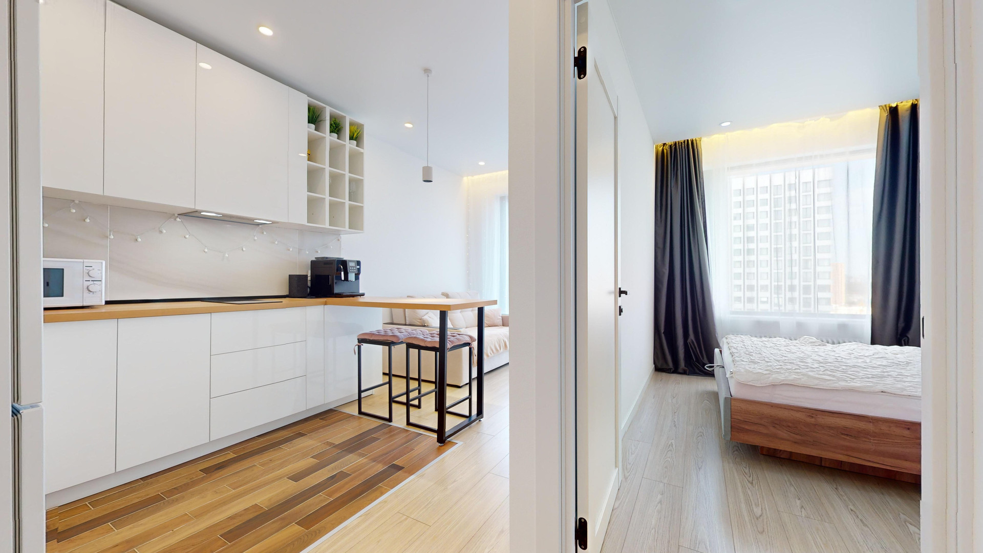 Уютная однокомнатная квартира в ЖК "Баланс". Квартира расположена на 23 этаже. Необыкновенный вид из окон. Общая площадь квартиры 29.6 кв.м. Кухня гостиная и спальня.  Ремонт в квартире выполнен в нейтральных тонах, меблирована стильной мебелью, бытовой техникой, кондиционер. Большие панорамные окна. Квартира невероятно светлая! На территории жилого комплекса  закрытые детские  площадки, на первом этаже зона хранения, подземный паркинг, на первых этажах различная инфраструктура.