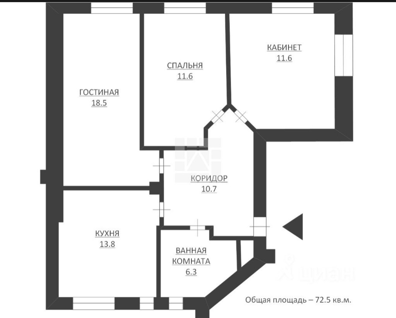 Общая площадь 72.5 м2
