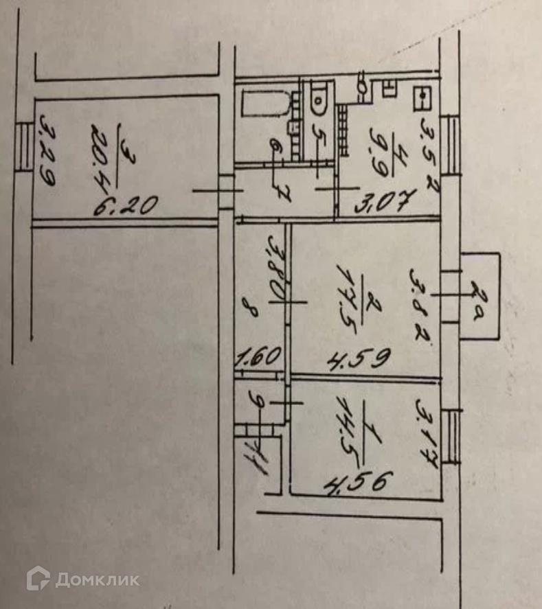 Квартира просторная с потолками три метра. Общая площадь 80,4 кв. м., жилая 52,4 кв.м., кухня 10 кв.м., жилые комнаты 20,4 кв.м., 17,5 кв.м., 14,5 кв.м. В квартире изолированные комнаты, санузел раздельный, балкон не застеклен. Т