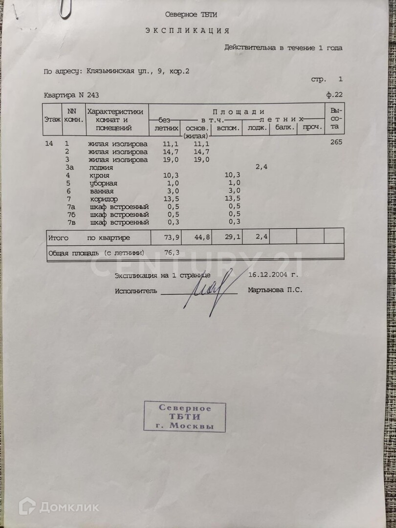 3-комнатная квартира, 76.3 м2, этаж 14 / 16, на продажу в Москве, Клязьминская улица, 9к2
