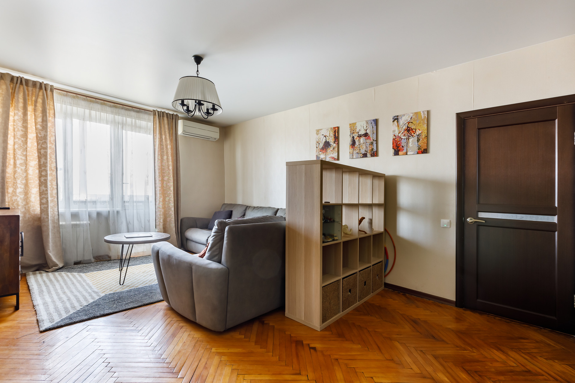 В квартире две изолированные комнаты и большая удобная гостиная, современная кухня, два балкона, качественный ремонт - все готово для вашего проживания!