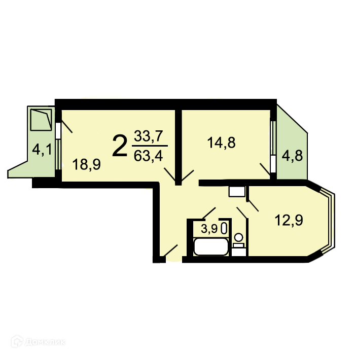 Общая площадь 63.4 м2