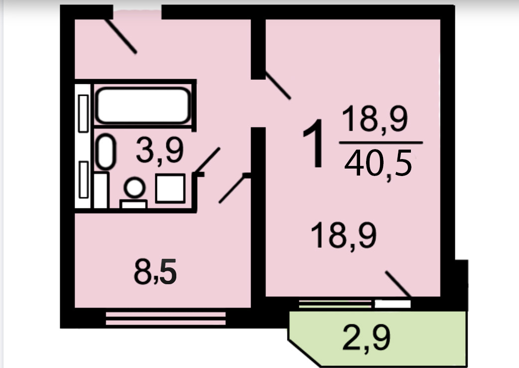 Общая площадь 40.5 м2