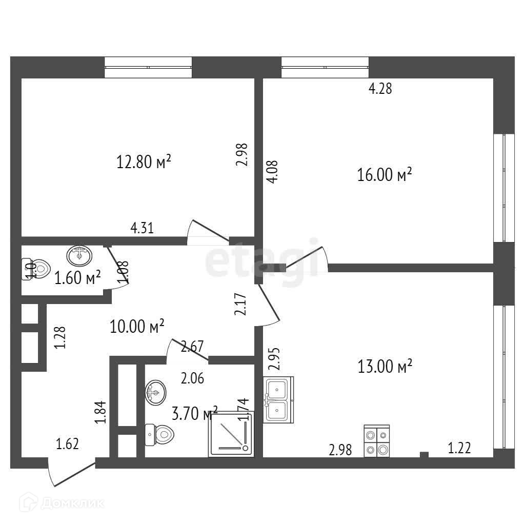 Общая площадь 57.7 м2