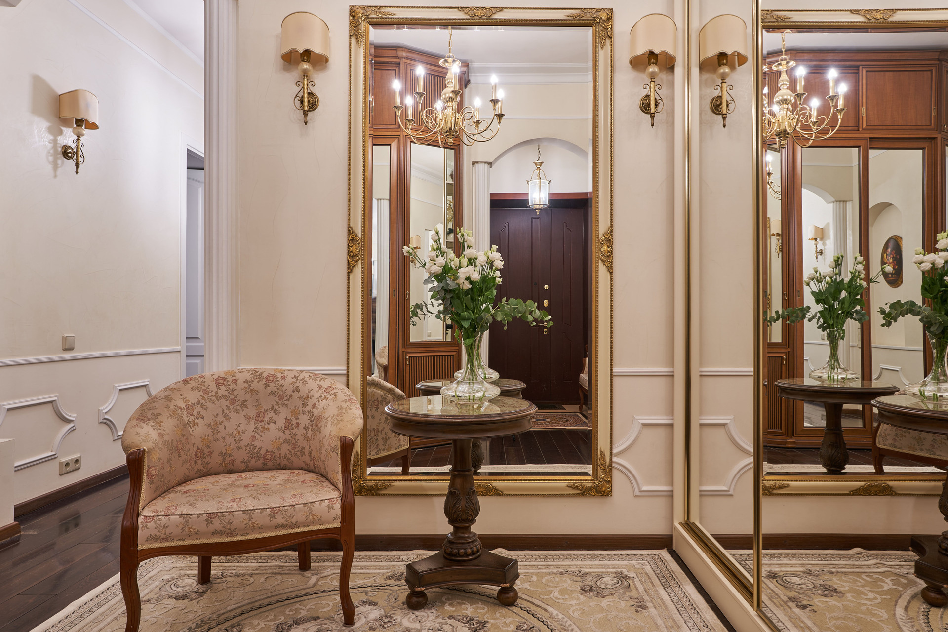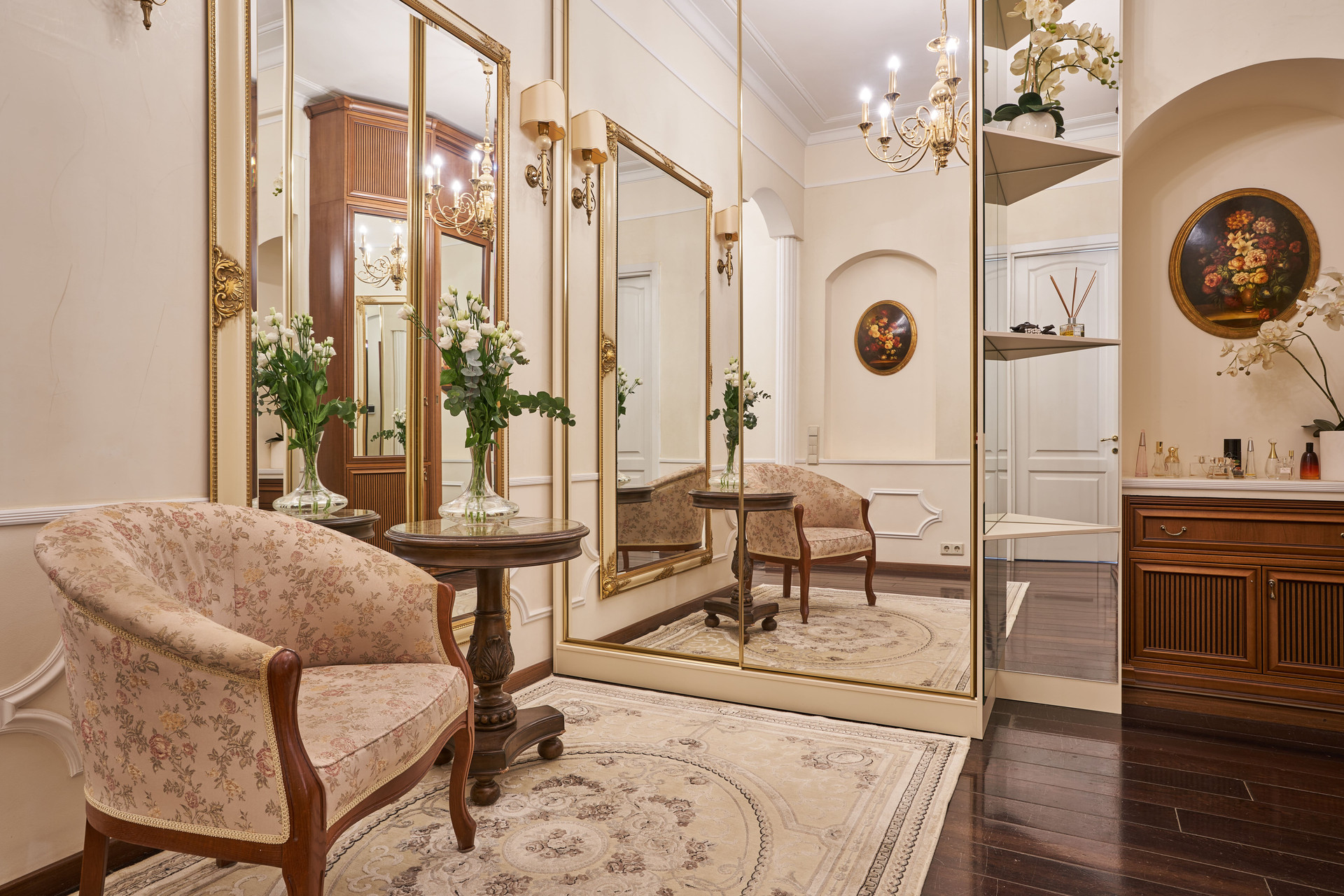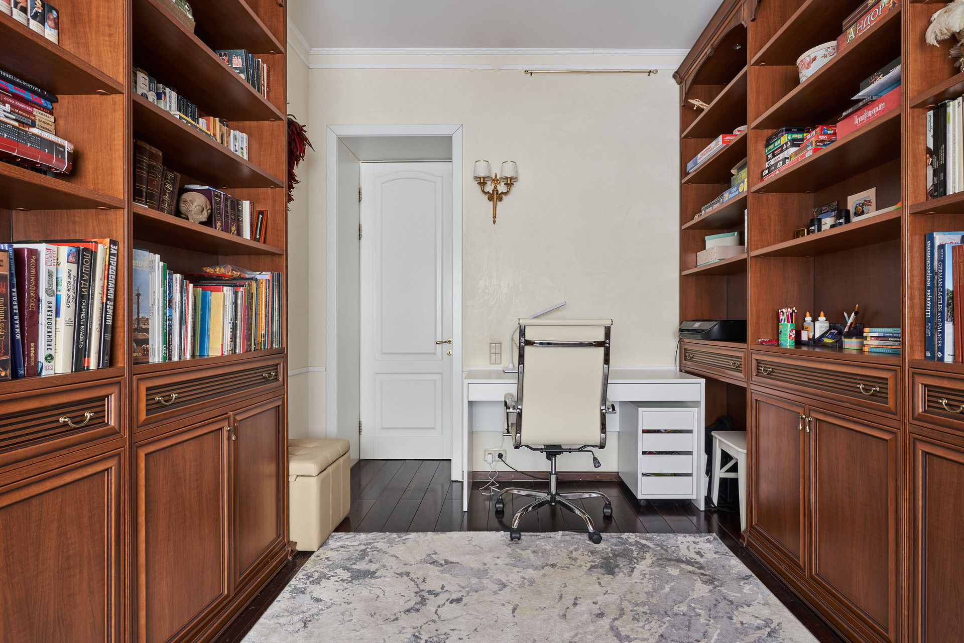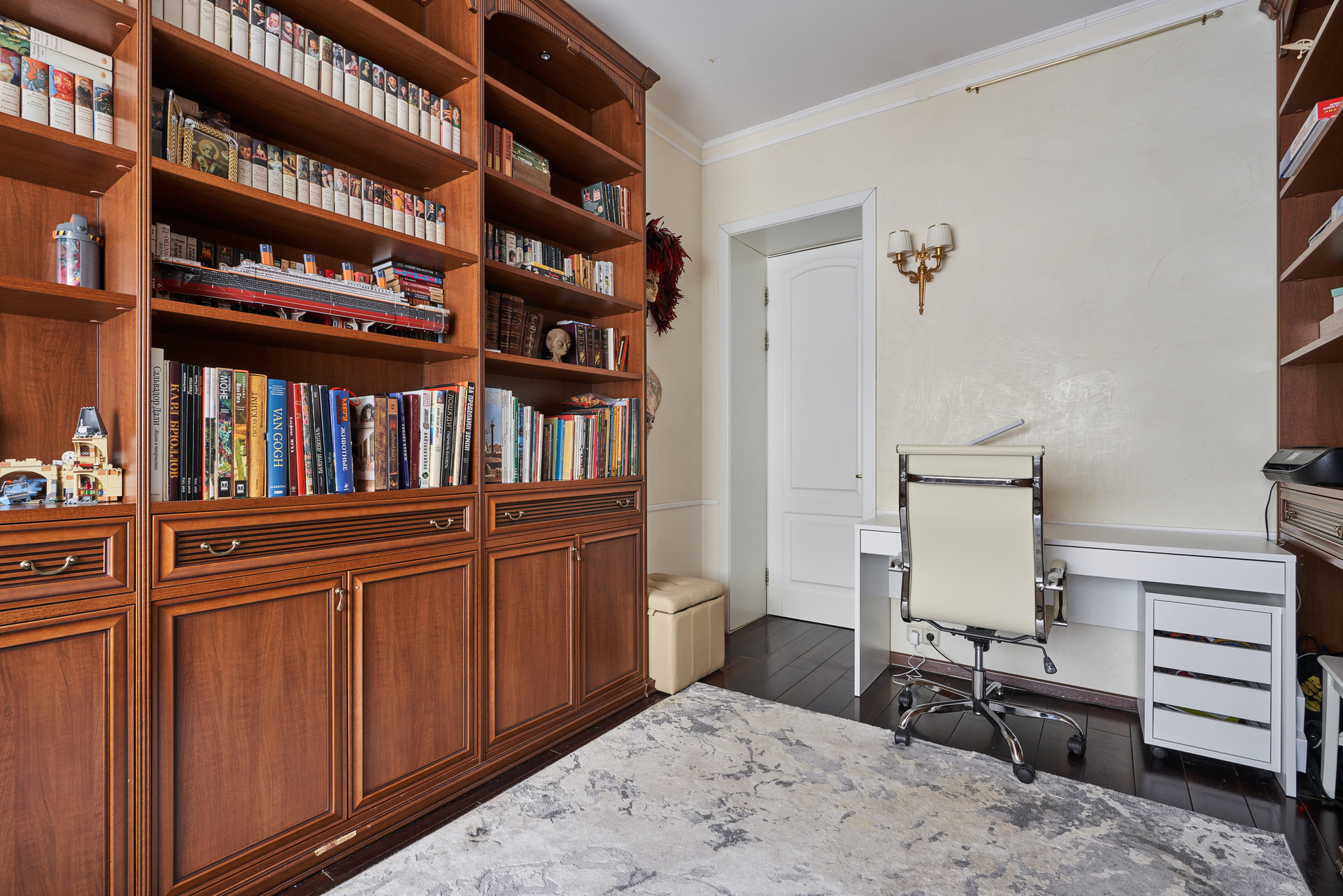 Продуманная планировка квартиры: четыре изолированные комнаты, из которых гостиная, кабинет и две спальни, кухня, просторный санузел, большой холл, гардеробная и постирочная.