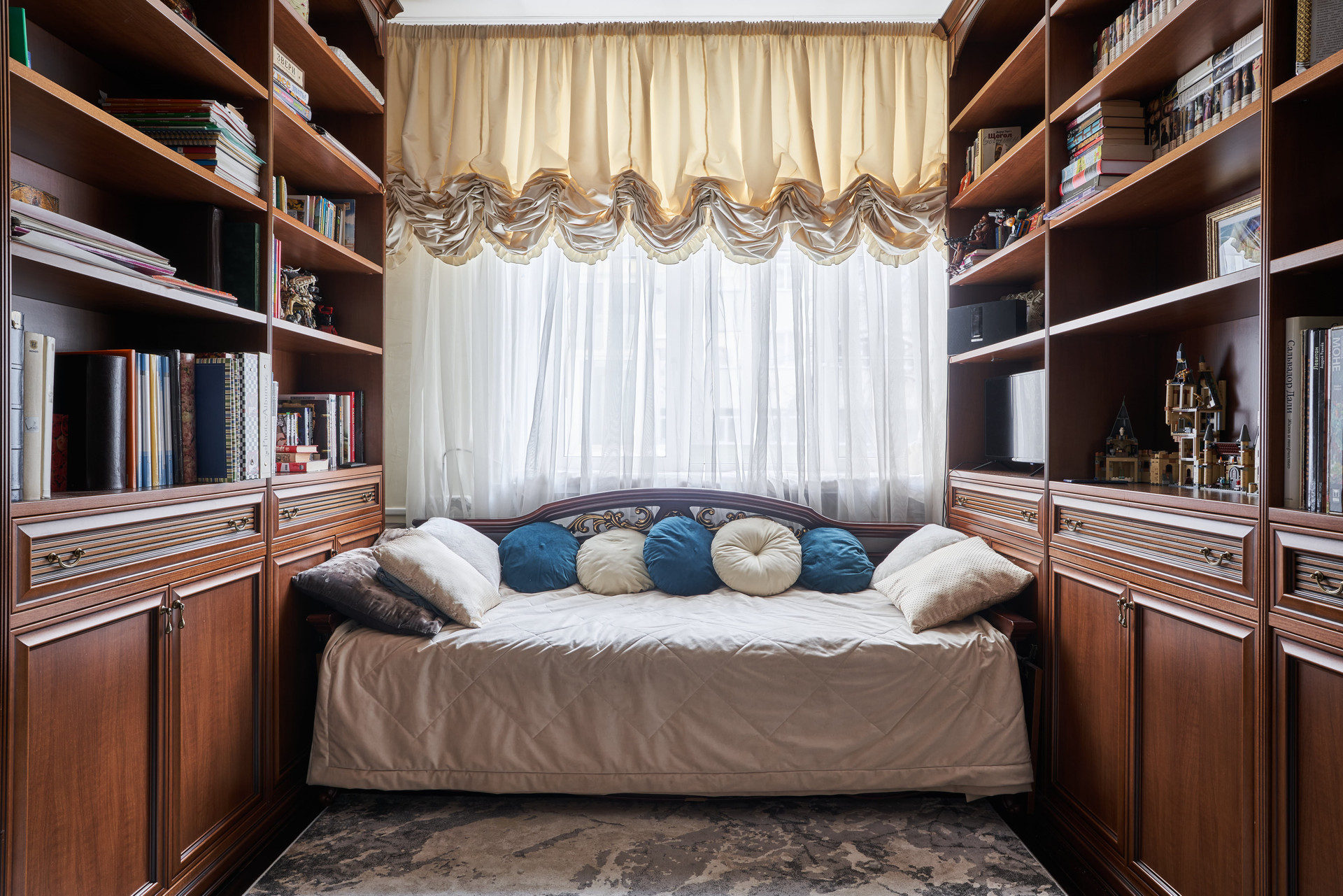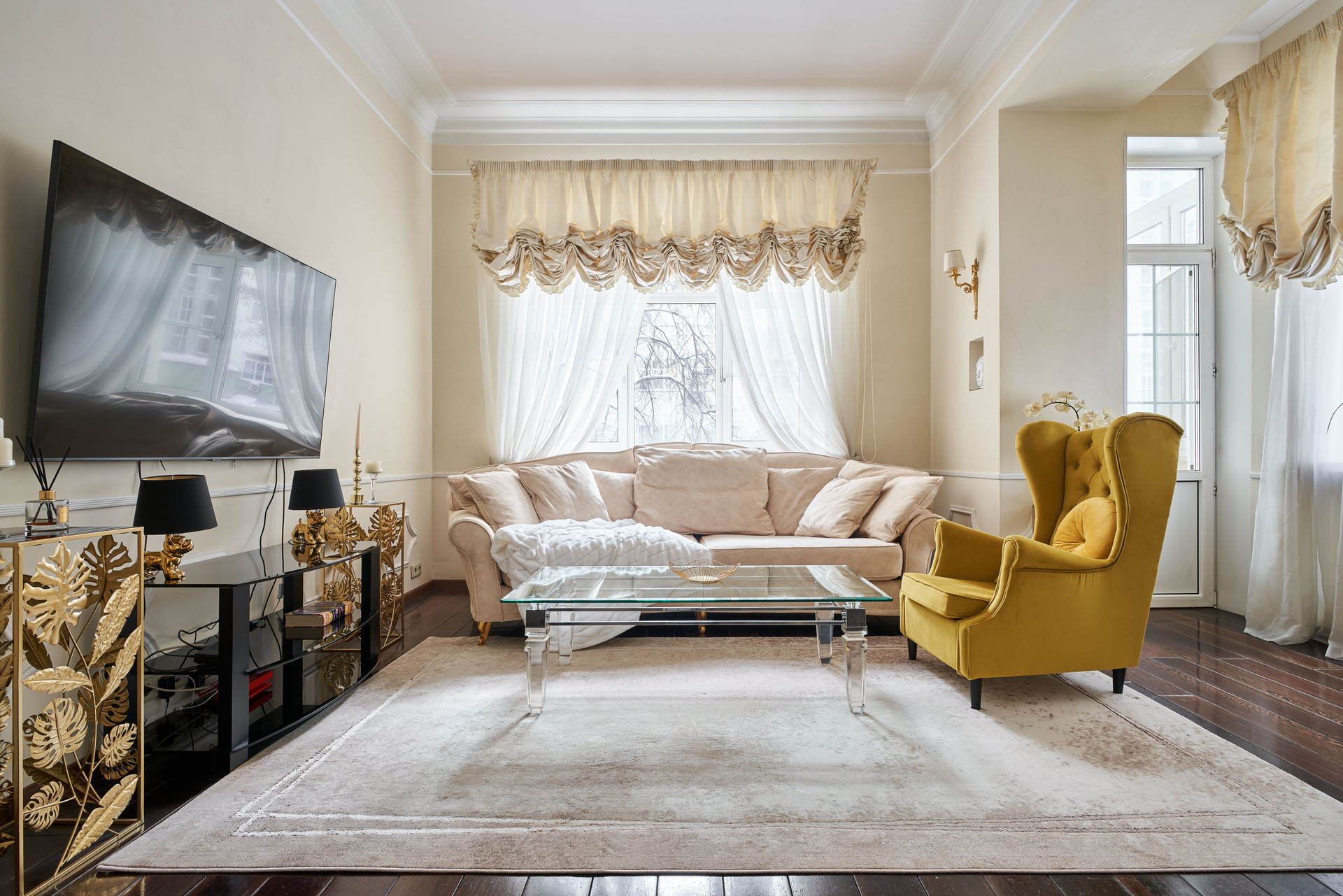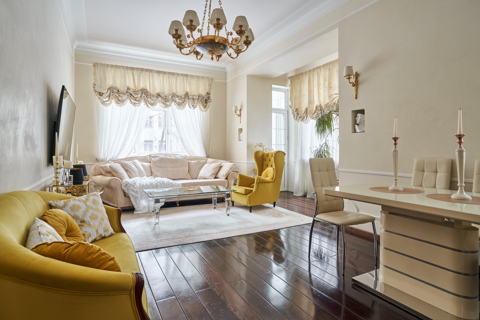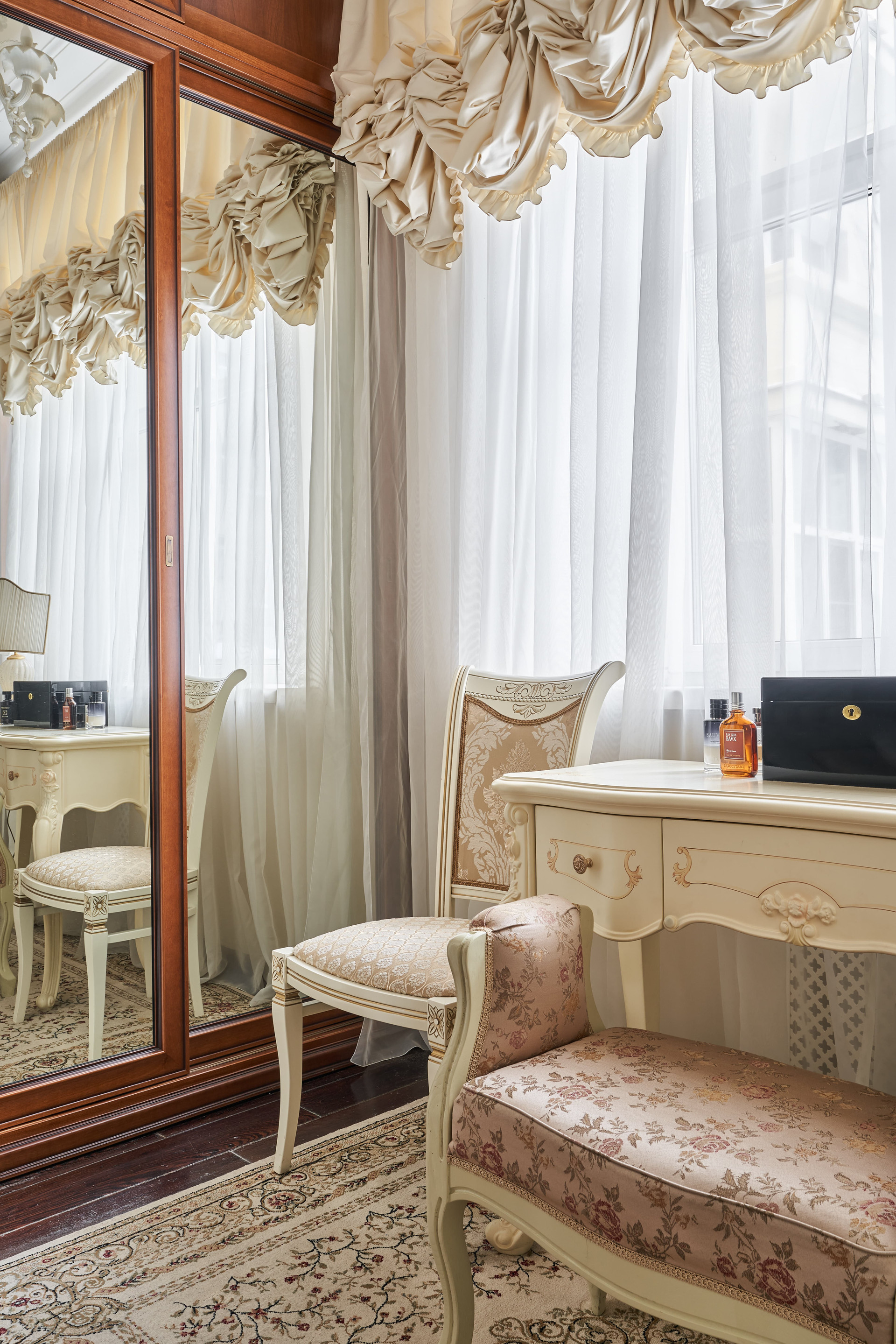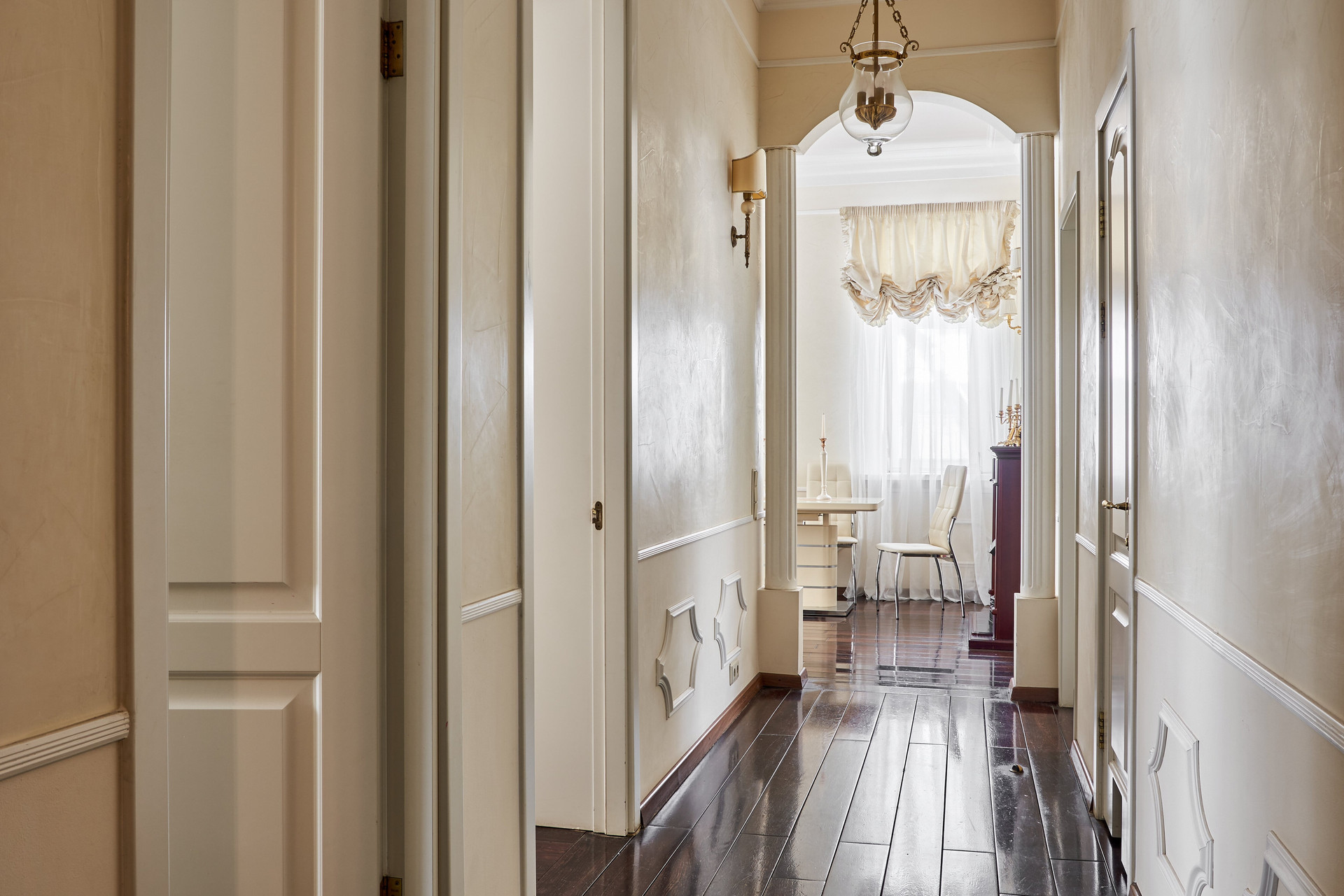 Продуманная планировка квартиры: четыре изолированные комнаты, из которых гостиная, кабинет и две спальни, кухня, просторный санузел, большой холл, гардеробная и постирочная.