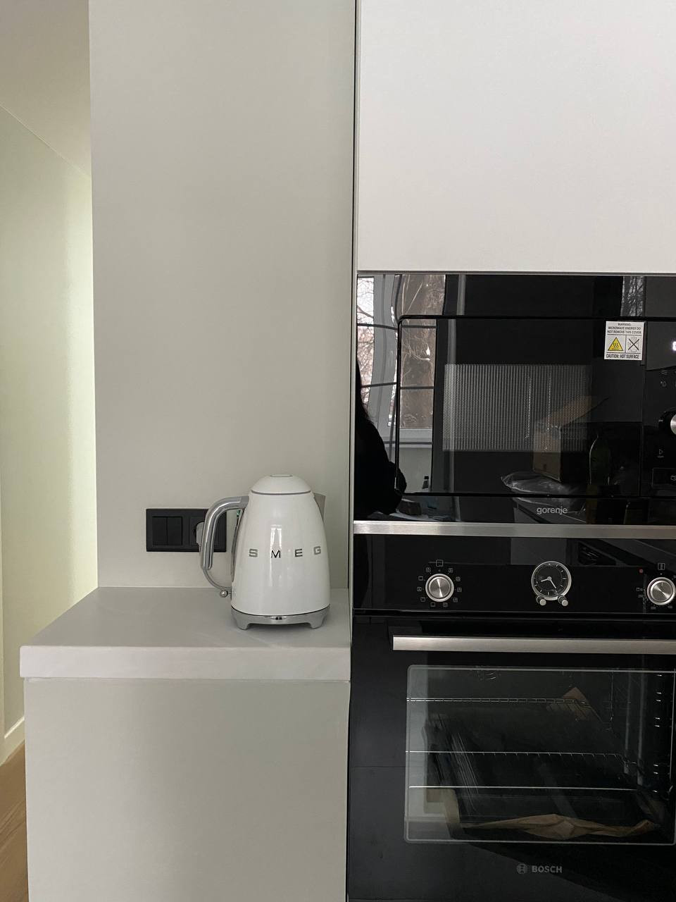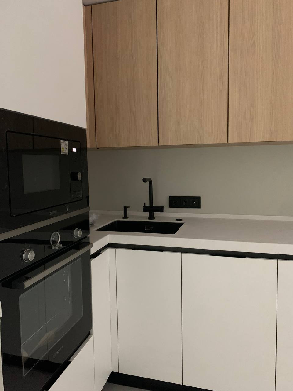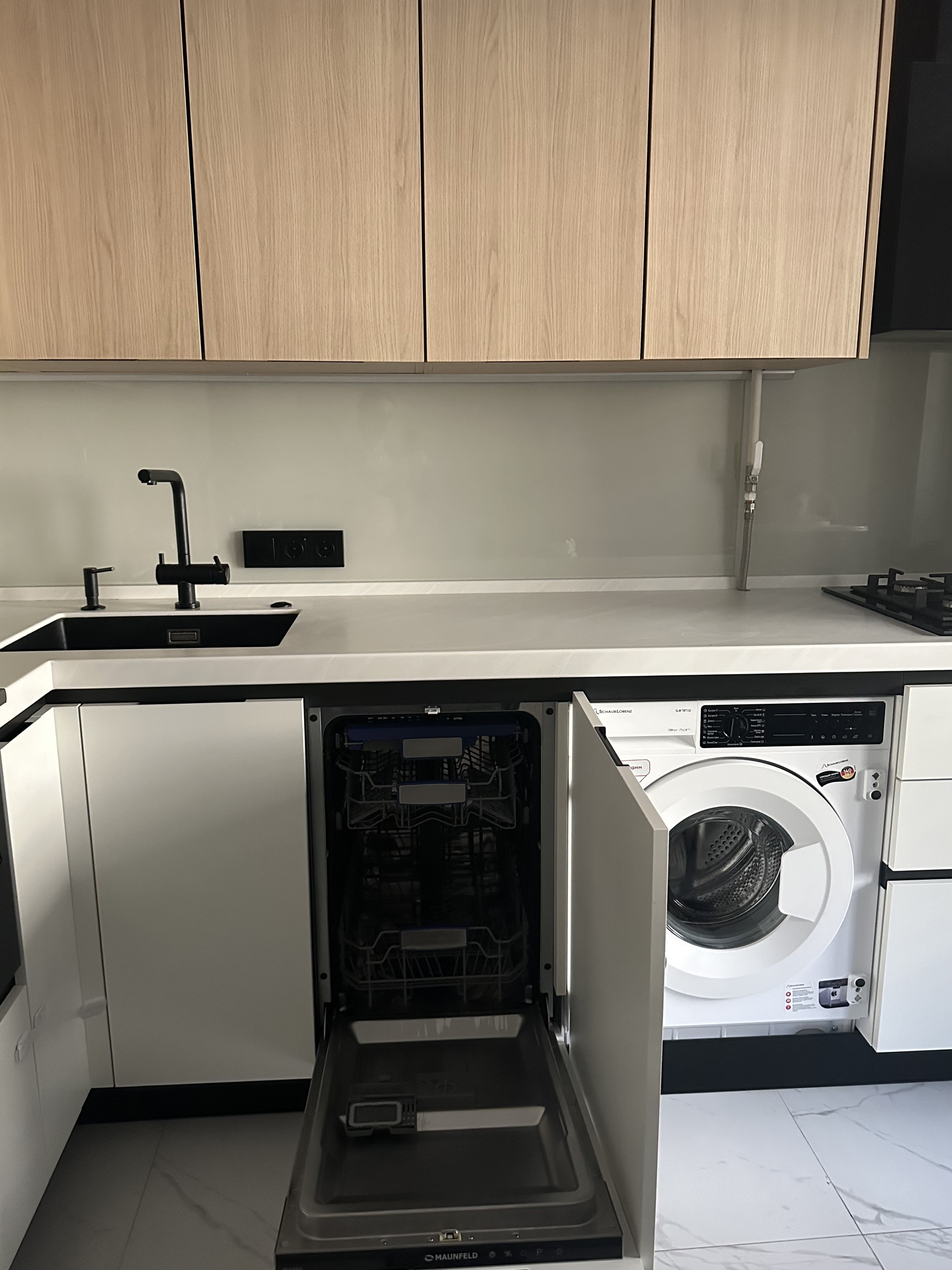 Кухня: Стильный кухонный гарнитур , столешница из искусственного камня, шкафы выполнены из дорогого пластика. Установлена дорогая встраиваемая техника: (духовка Bosch, газовая плита Bosch, микроволновая печь gorenje, стиральная машина shaub lorenz, посудомоечная машина maunfield, холодильник LG, кран omoikiri, установлен фильтр тонкой очистки воды аквафор. На кухне установлено Дизайнерское окно в английском стиле. На лоджии установлена Сушильная машина "gorenje" (98 тыс.р.)