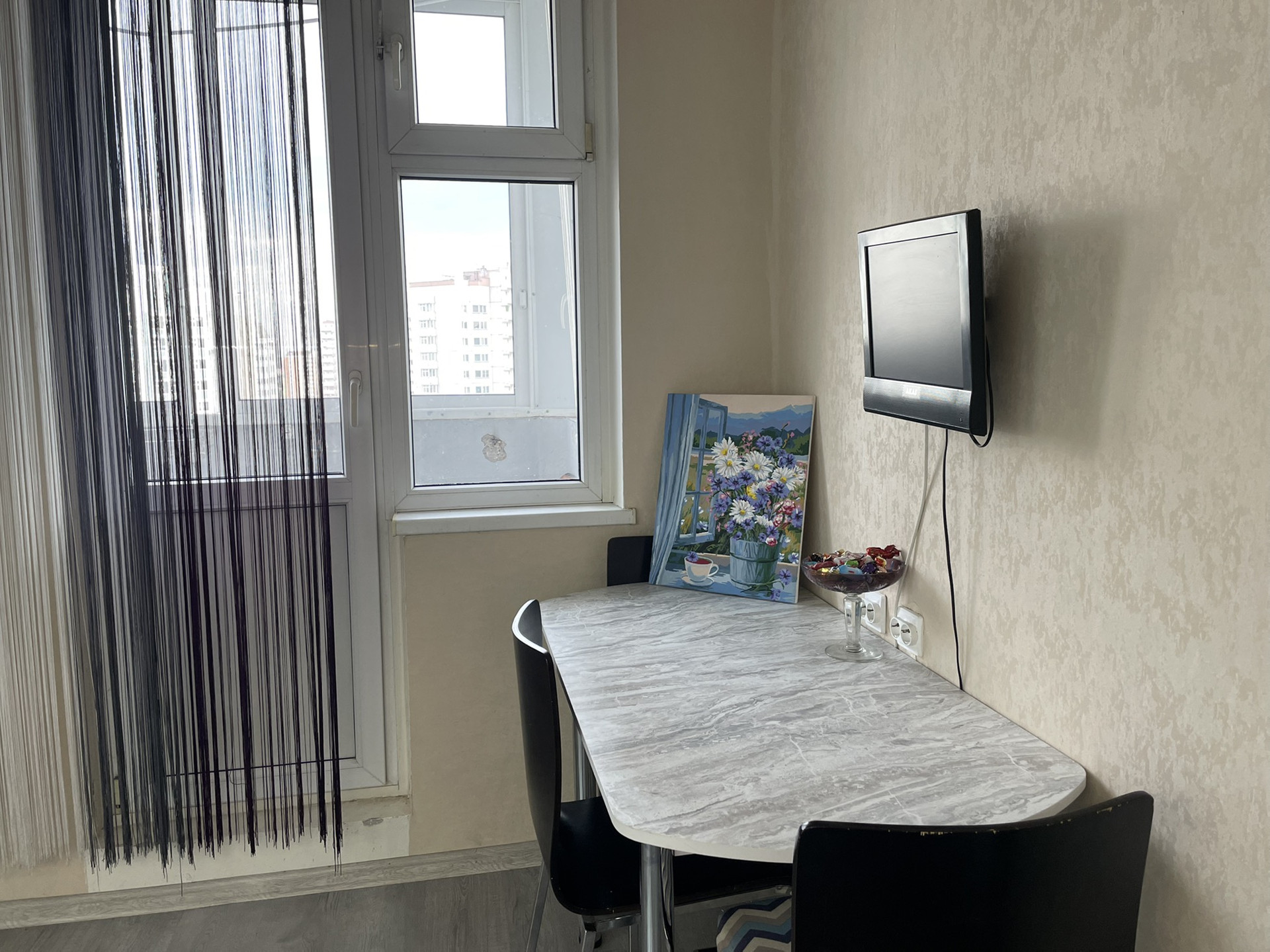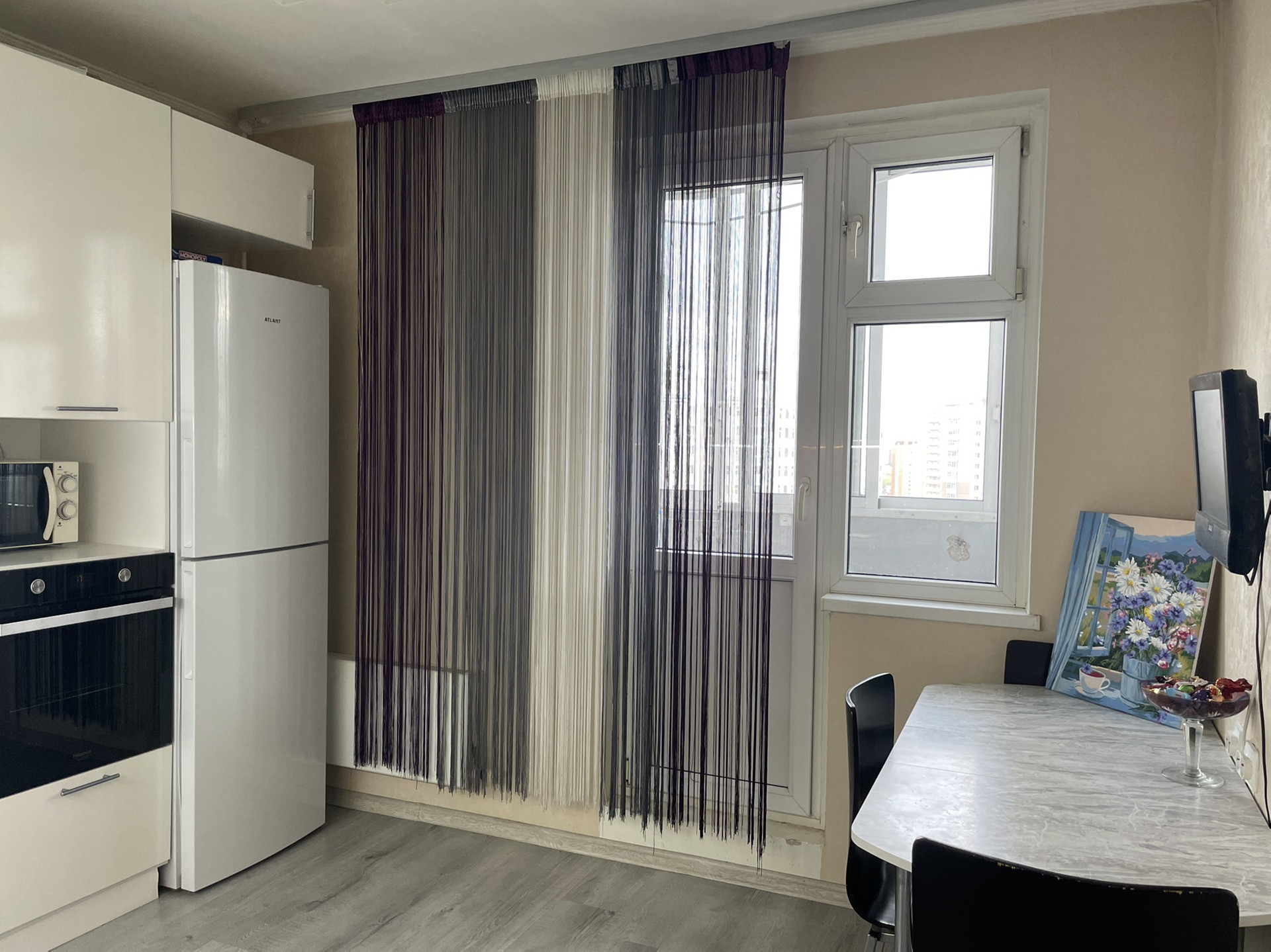 Большая кухня с балконом и встроенной техникой которая останется покупателю (посудомоечная машина, духовой шкаф, варочная панель, холодильник, телевизор), светлая комната с кондиционером, раздельный санузел, окна во двор. Почти вся мебель и техника остаются, за исключением личных вещей. Тамбур на четыре квартиры, три лифта, чистый подъезд, хорошие соседи.