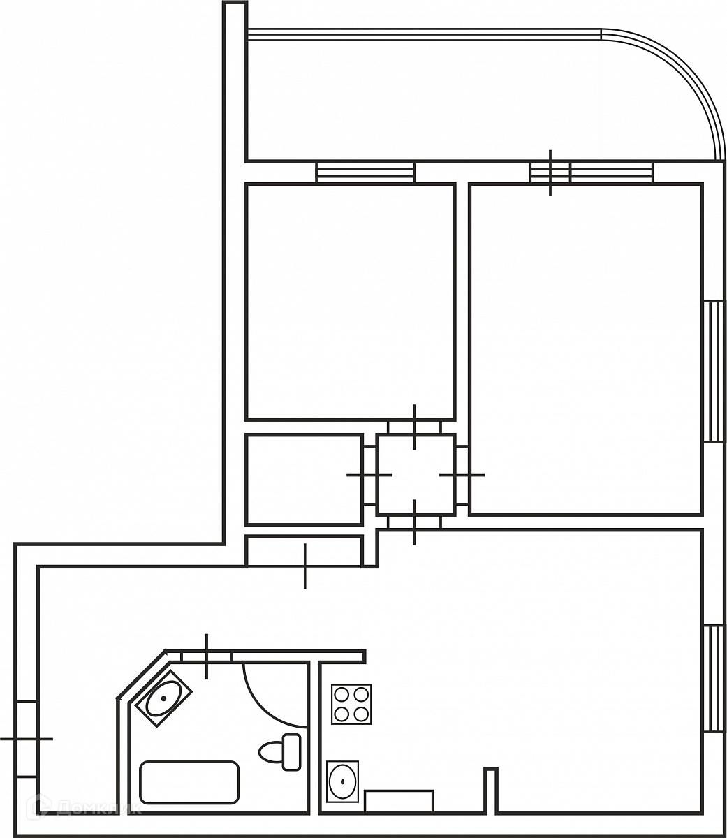 Две изолированные спальни (12,6 и 18,8 м2); большая гостиная 18,6 м2 + кухня-ниша 3,4 м2 и большая лоджия (10,4 м2) , за счет которой при желании можно увеличить площадь квартиры.