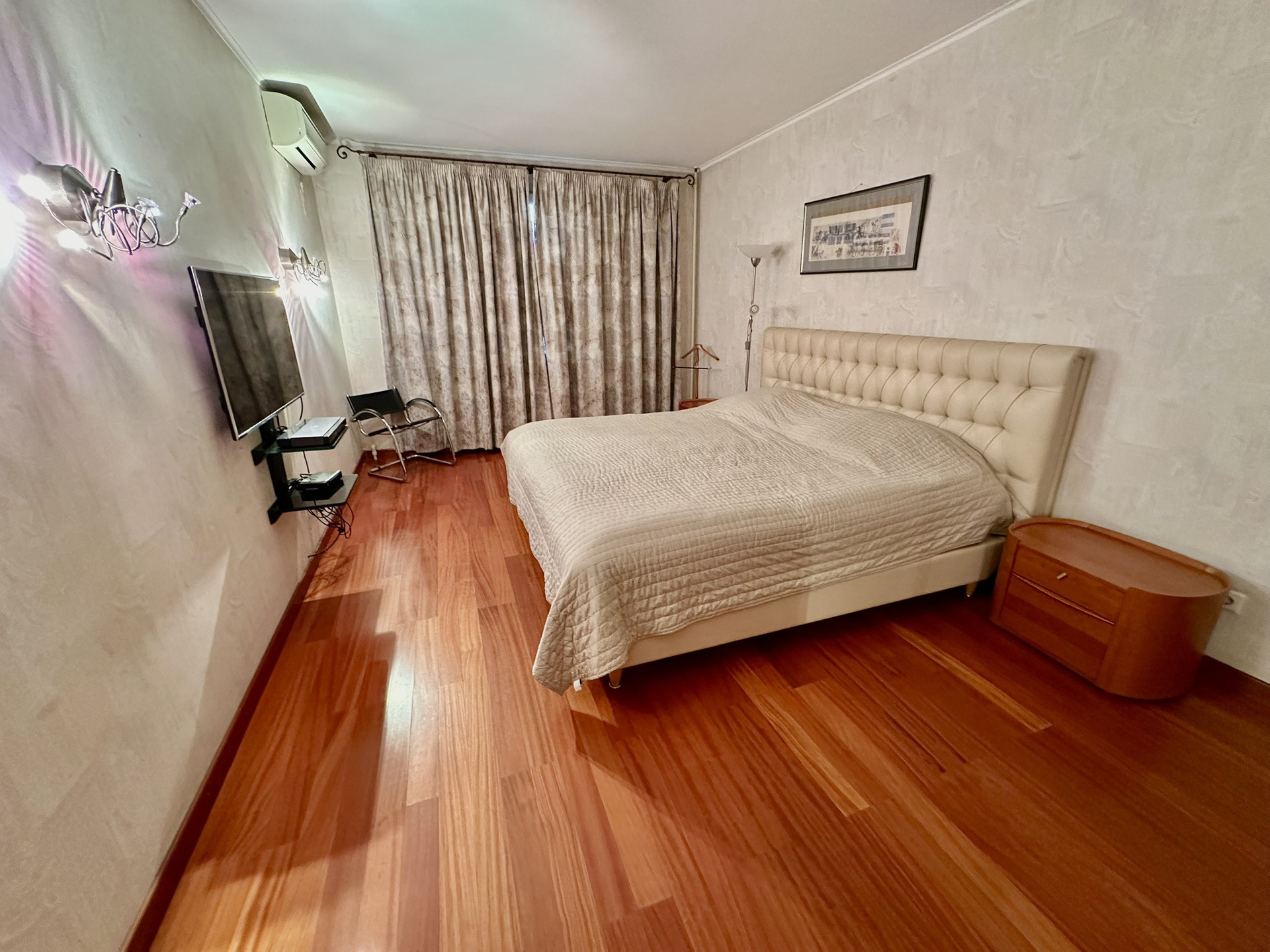 Полная меблировка, 3 кондиционера, 5 больших вместительных встроенных шкафа, 2 санузла с душевыми,2 водонагревателя,  отдельный кабинет, 3 сейфа.