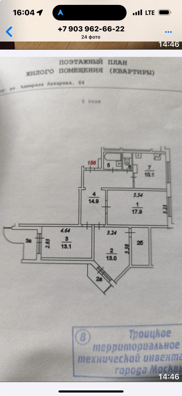 3-комнатная квартира, 78.3 м2, этаж 6 / 12, на продажу в Москве, улица Адмирала Лазарева, 64