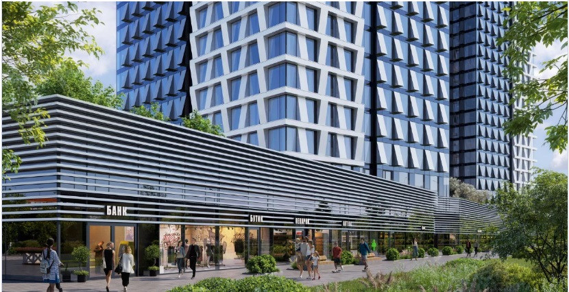 Концептуальный проект предлагает все преимущества бизнес-класса: подземный паркинг, торговый центр и супермаркет, фитнес-клуб, бассейн и спа, офисы и коворкинги  всё для полноценной и комфортной жизни в столице.