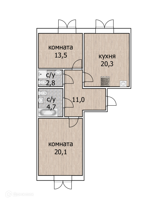 Кухня - 20.3 квадратных метров.