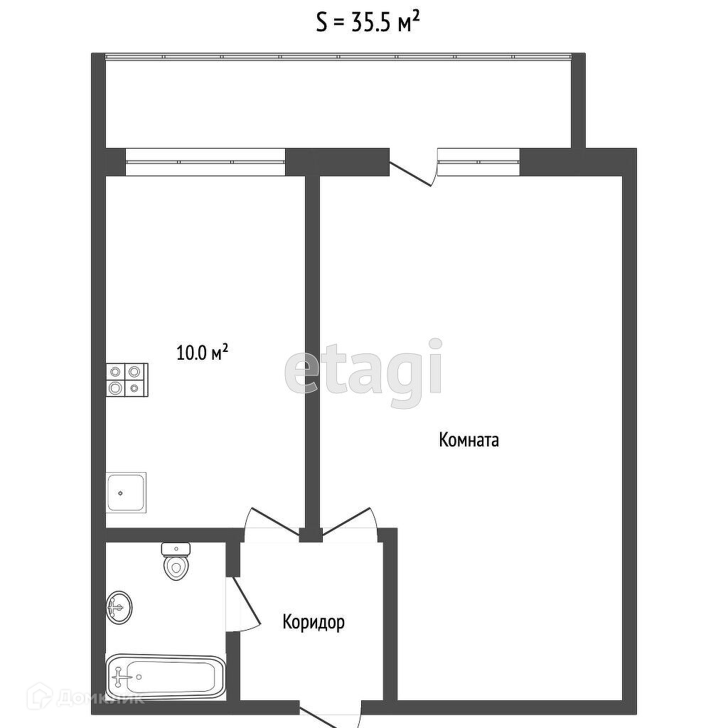 Общая площадь 35.3 м2