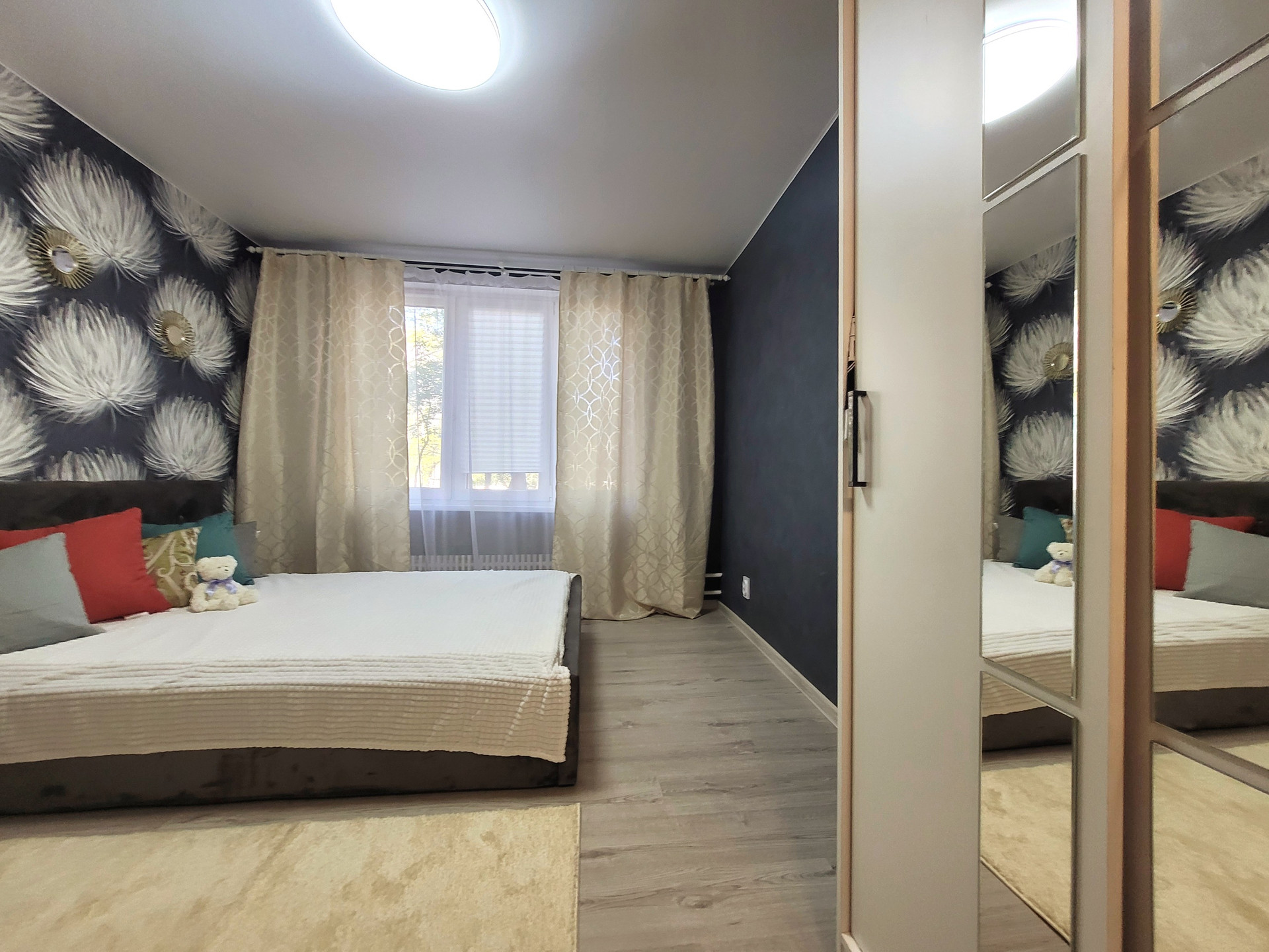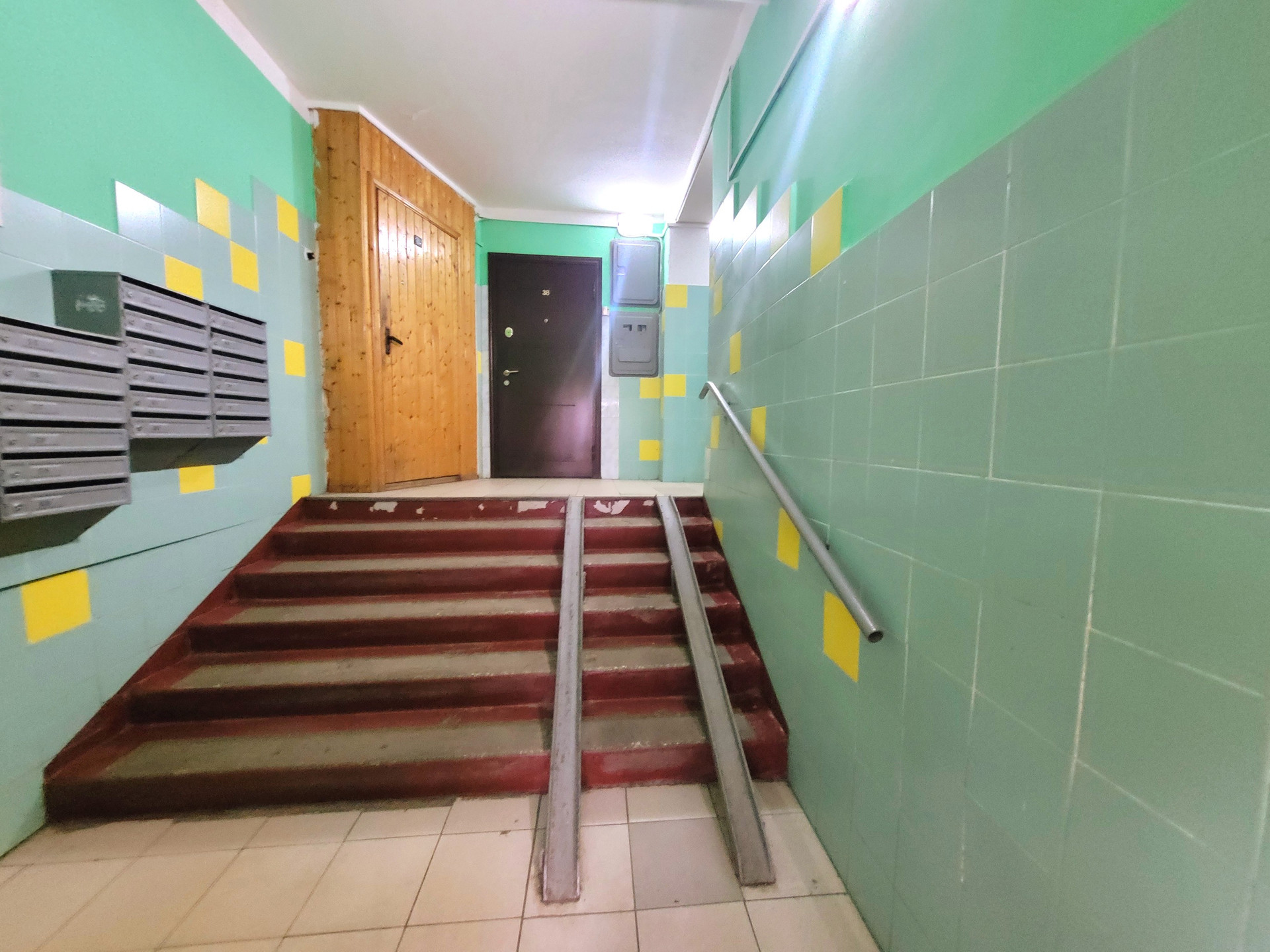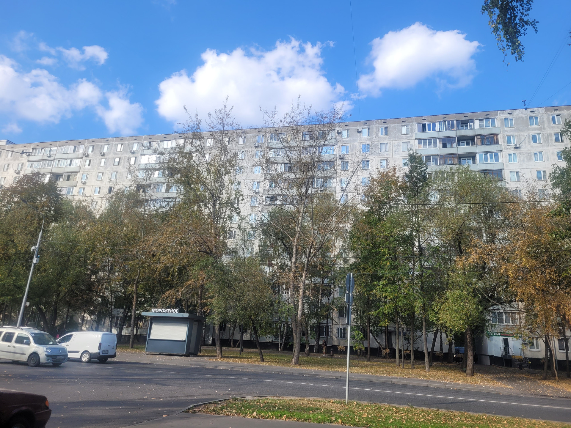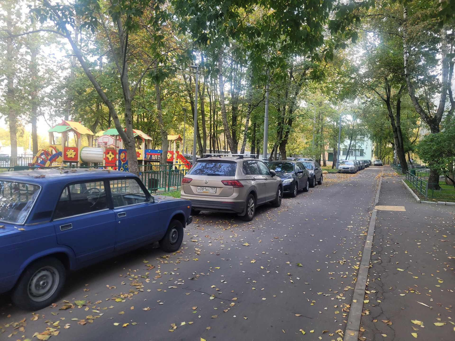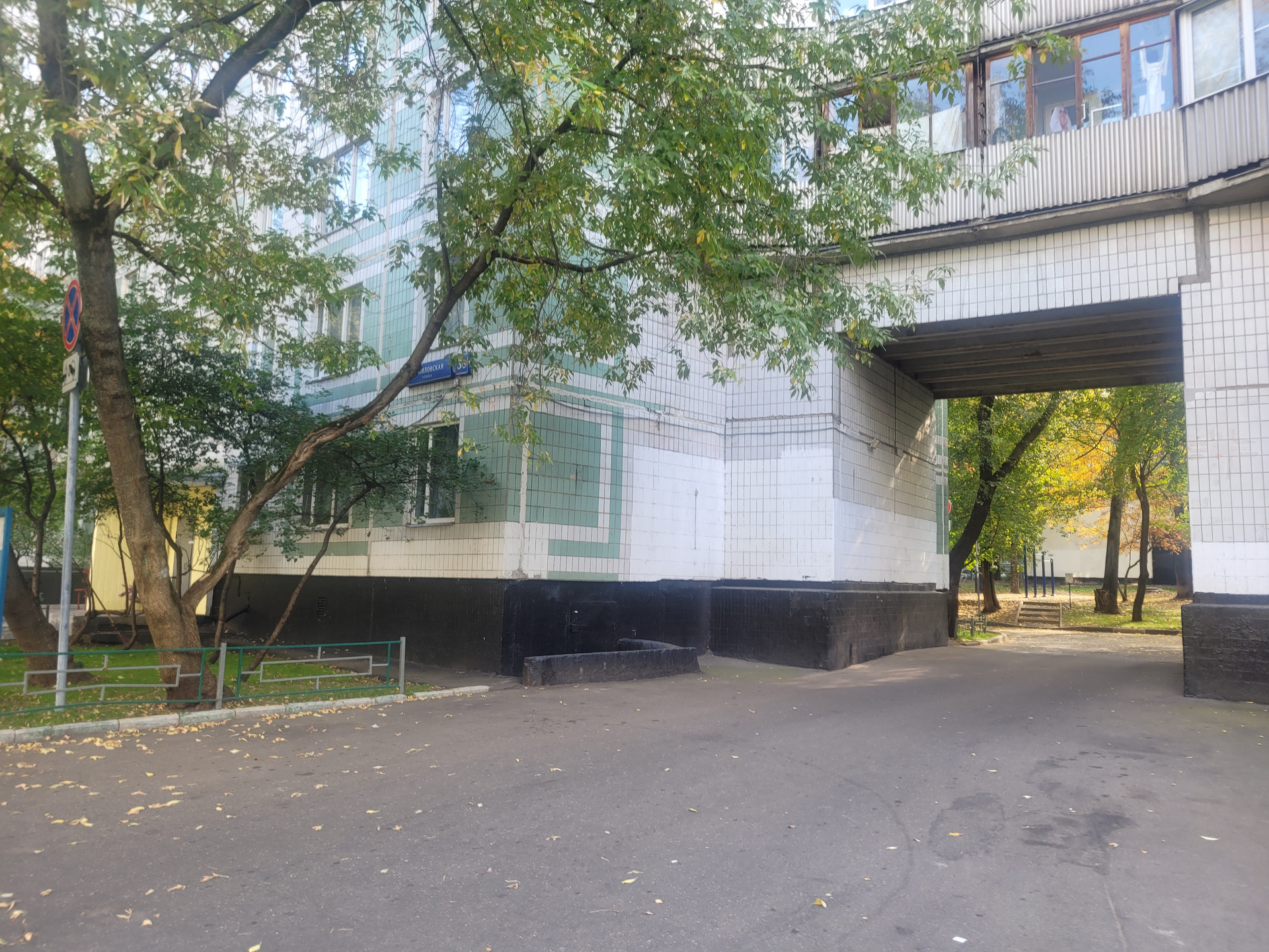 Дом 1975 г, высокий 1 ый этаж, в окно не заглянуть, вид из окна во двор. Прекрасная придомовая территория, много зеленых насаждений, детские и спортивные площадки. Парковка стихийная, мест достаточно.