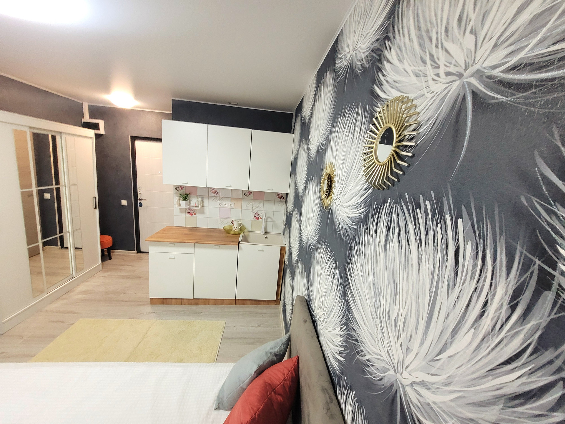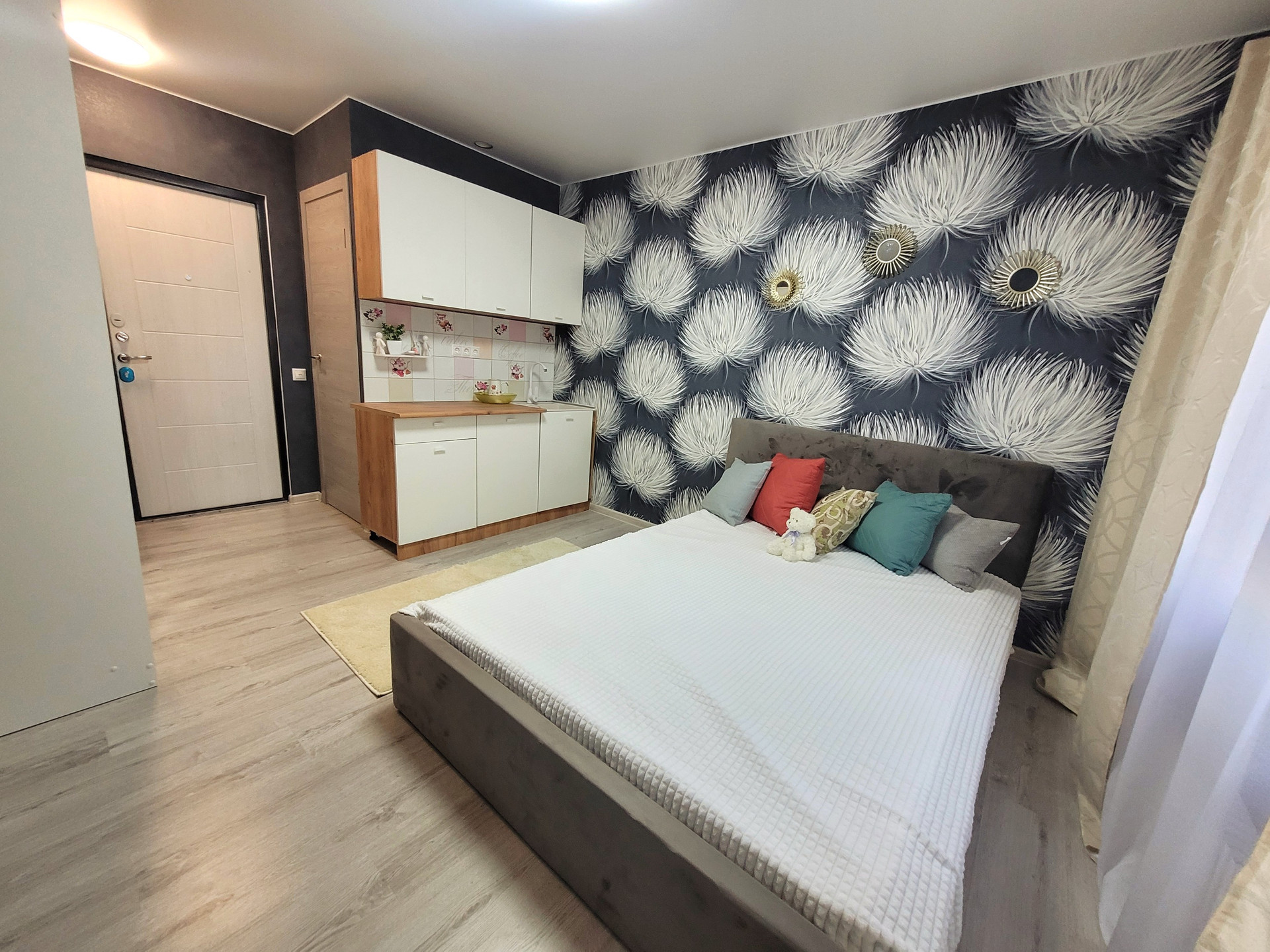Продаю студию 16,5 м2, совмещённый сан.узел, новая сан.техника, трубы поменяны, в комнате стены ровные, качественные обои, окно пластиковое, пол линолеум, новая входная металлическая дверь, новая проводка, установлены счетчики на воду и электричество, упакована необходимой мебелью : кухонная мебель,двухспальная кровать, большой шкаф с зеркалом для одежды, в сан.узле установлена новая стиральная машина, после ремонта никто не жил,чистая энергетика, всё готово для Вашего комфортного проживания.