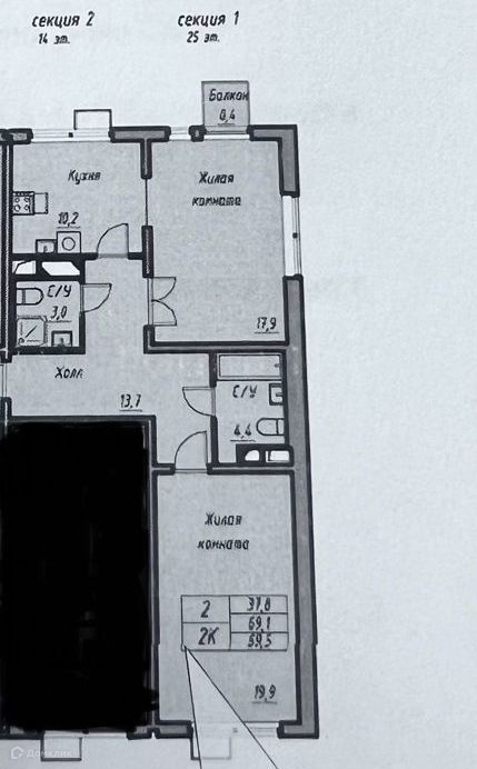 Количество комнат 2