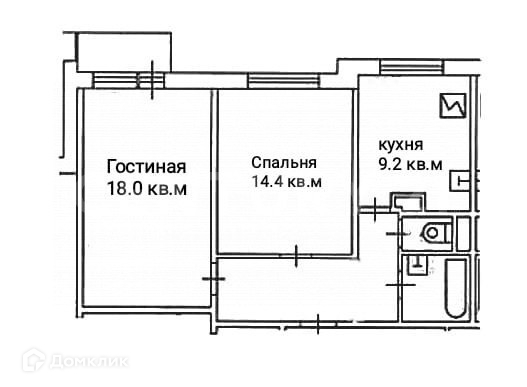 Жилая площадь 32.4 м2