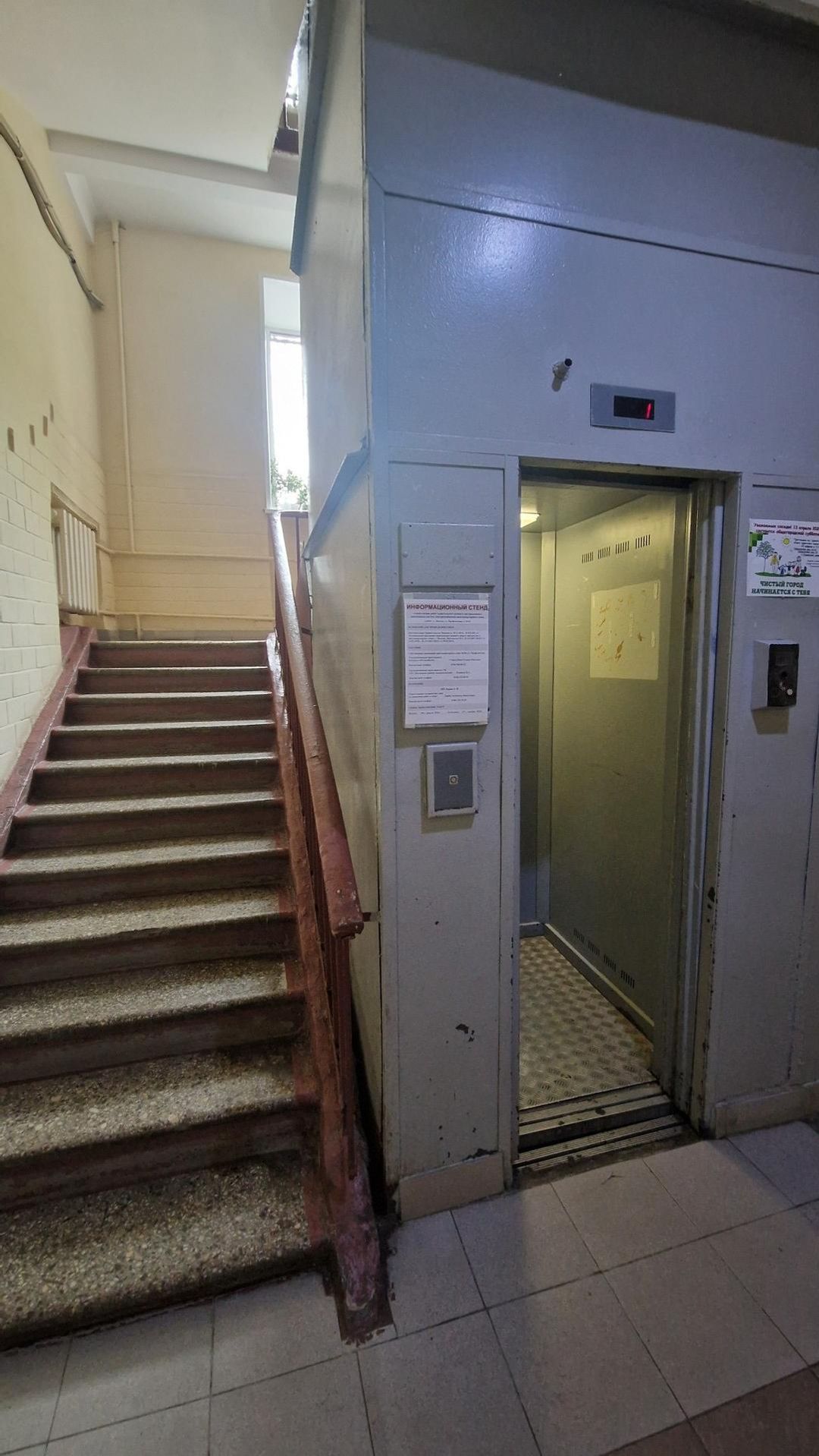 Вход в чистый ухоженный подъезд через металлическую дверь с домофоном, в подъезде был произведен косметический ремонт с заменой пассажирского лифта.
