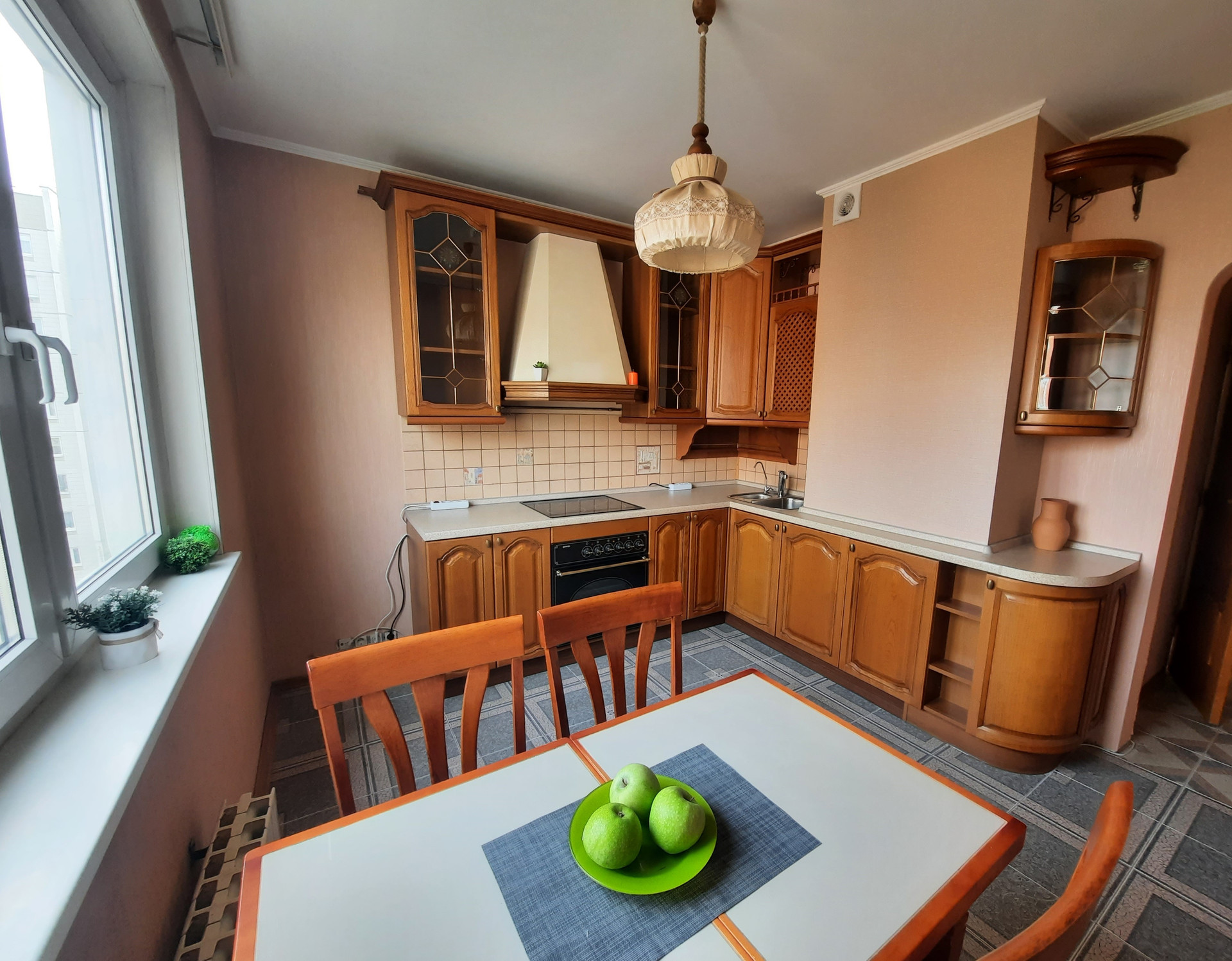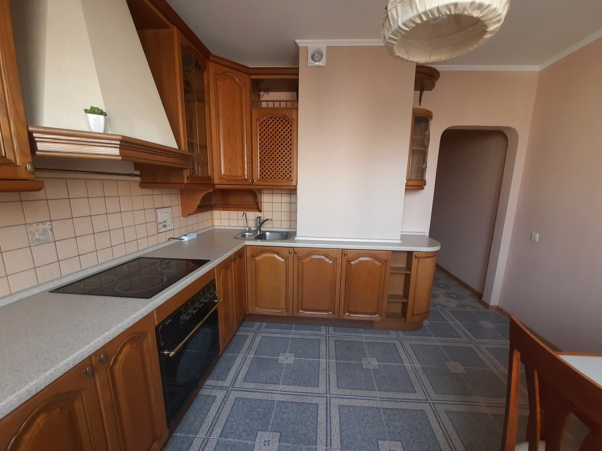 Квартира в хорошем состоянии, в комнатах напольное покрытие - паркет, в коридоре, санузле и кухне - плитка. Кухонный гарнитур с варочной панелью и раковиной под единой столешницей.